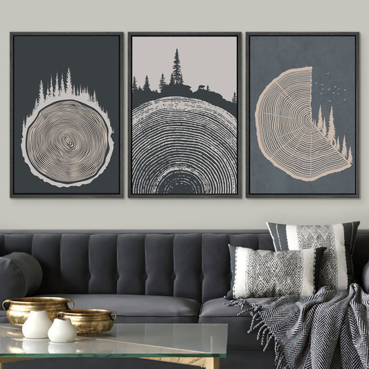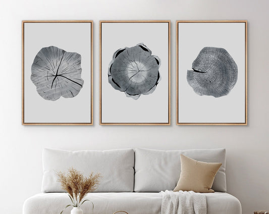 Framed Canvas Wall Art Set Wood Tree Ring Prints Modern Art Minimalist Neutral Decor