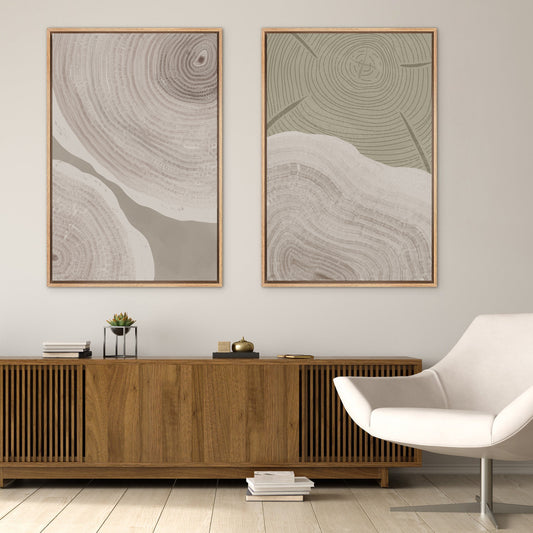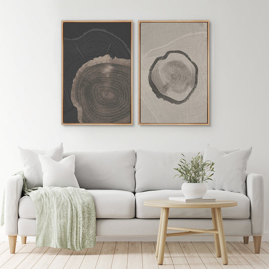 Framed Canvas Print Wall Art Set Oak Wood Tree Rings Illustrations Modern Art Neutral Boho Decor