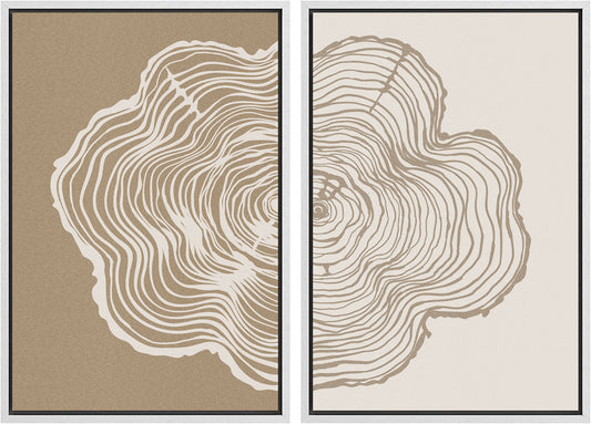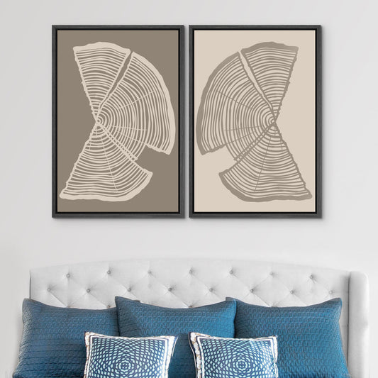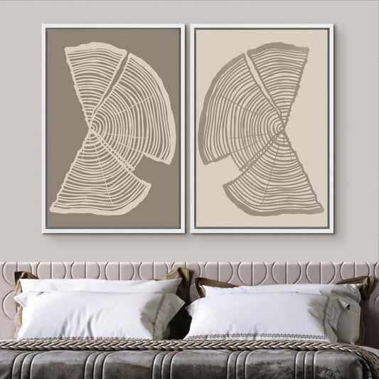 Framed Canvas Print Wall Art Set of 2 Pastel Beige Wood Tree Rings Abstract Illustrations Minimalist Modern Art Boho Decor