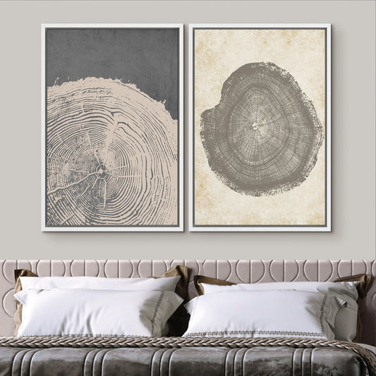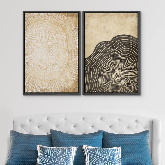 Framed Canvas Print Wall Art Set of 2 Duotone Wood Tree Ring Abastract Illustrations Modern Art Minimalist Boho Decor