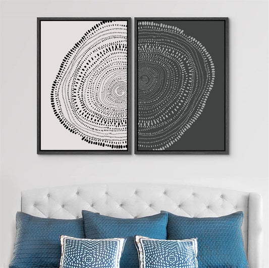 Framed Canvas Print Wall Art Set of 2 Spiral Dot Pattern Abstract Wood Tree Rings Illustrations Modern Art Minimalist Boho Decor