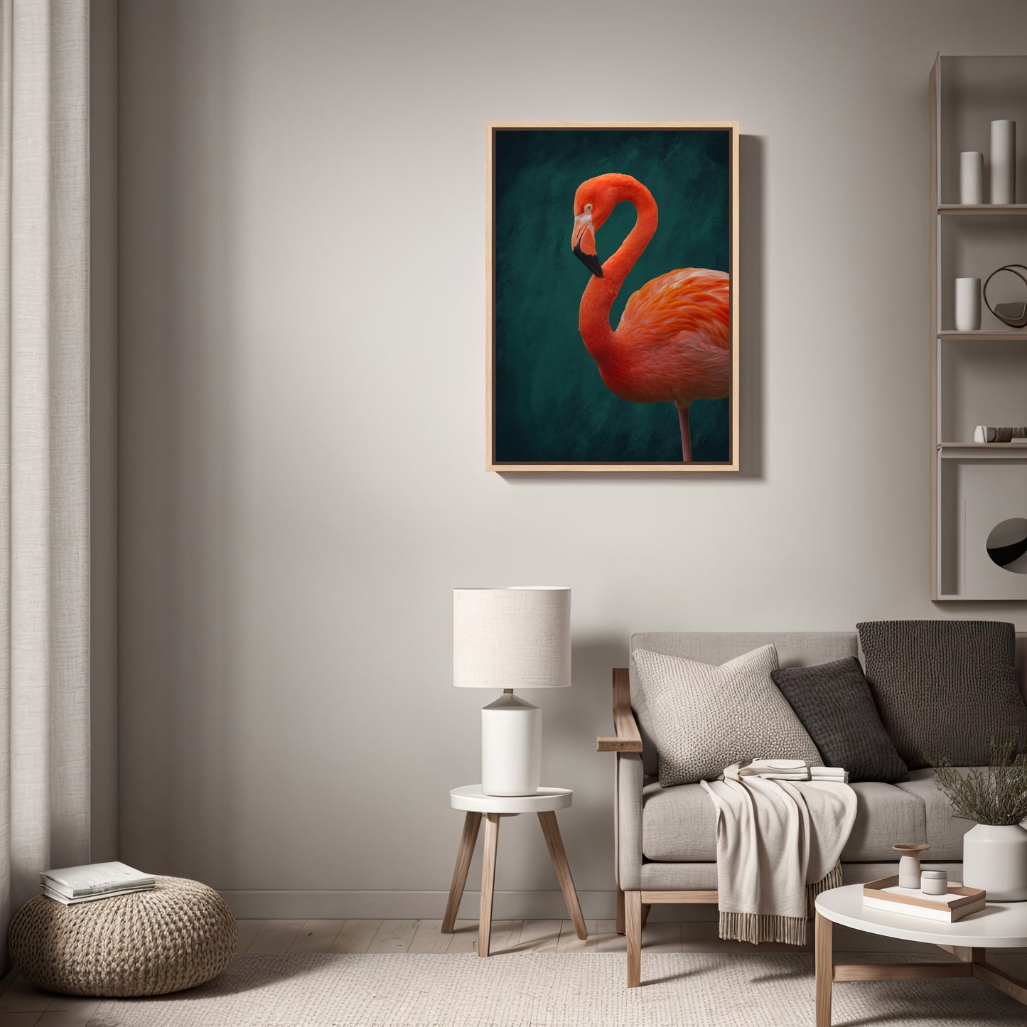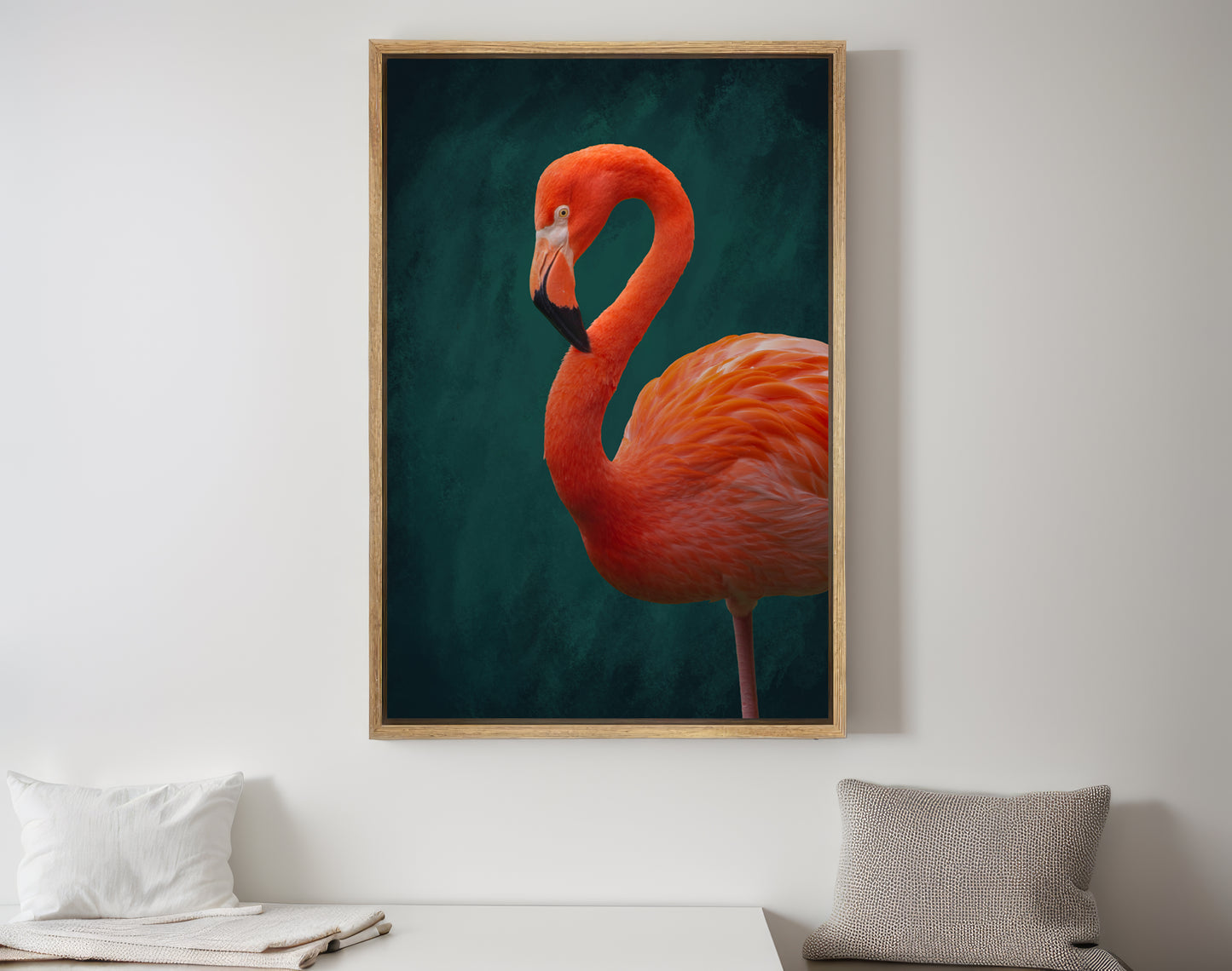 Flamingo Art Print · Pink Flamingo Poster · Large Wall Art · Botanical Print · Pink and Green Wall Art · Maximalist Decor