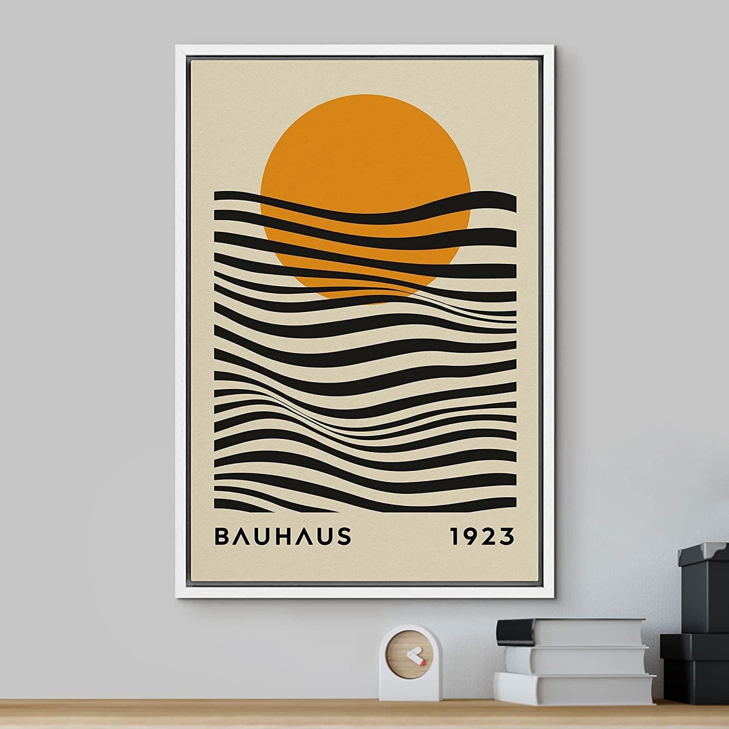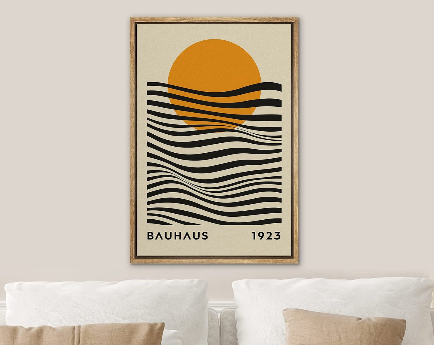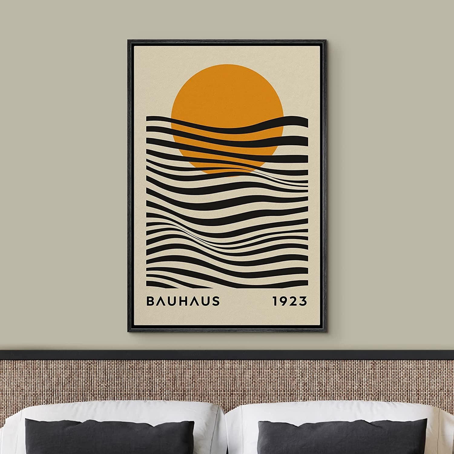 Framed Canvas Print Wall Art Bauhaus Sun and Waves Abstract Illustration Mid Century Modern Wall Art Minimalist Decor