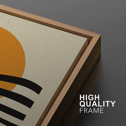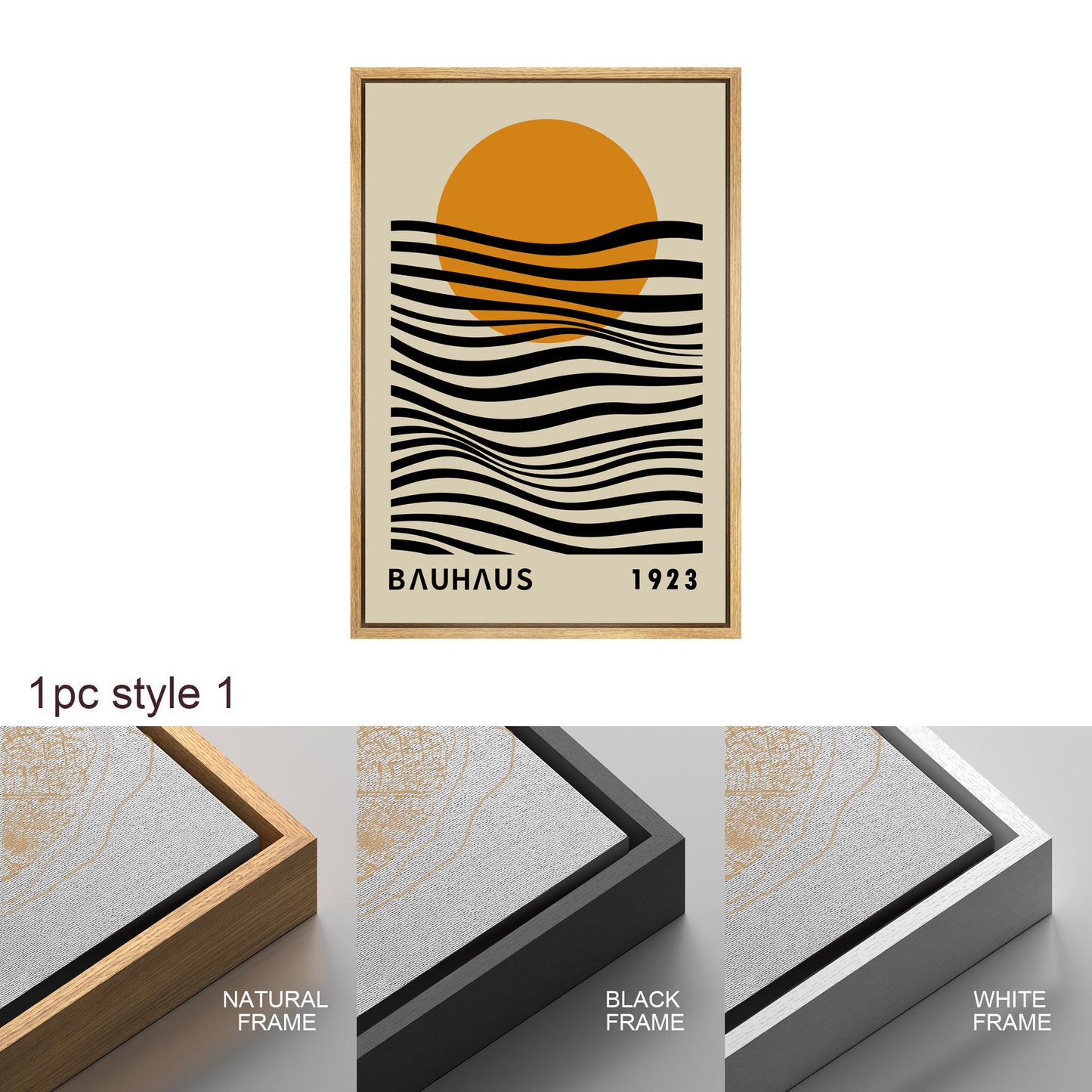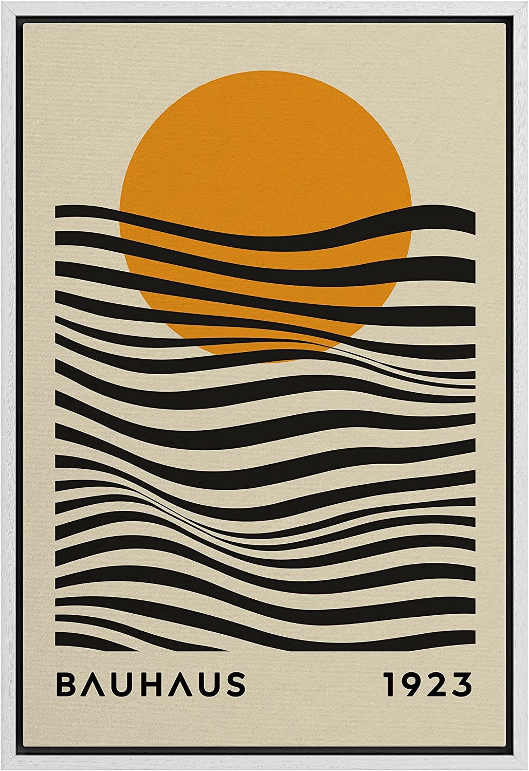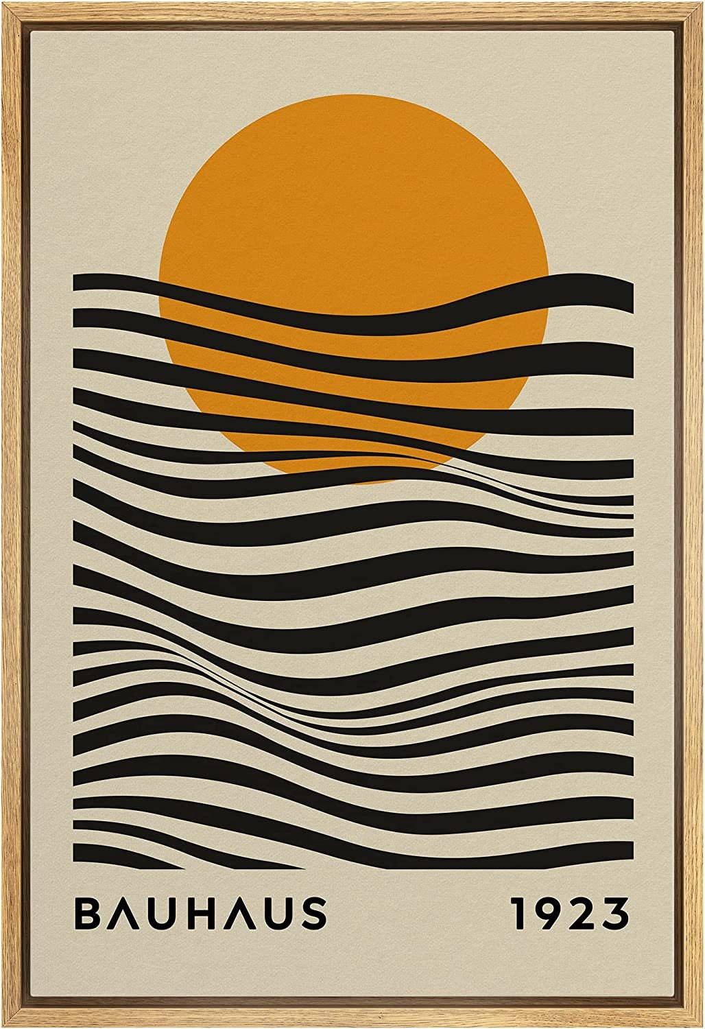 Framed Canvas Print Wall Art Bauhaus Sun and Waves Abstract Illustration Mid Century Modern Wall Art Minimalist Decor