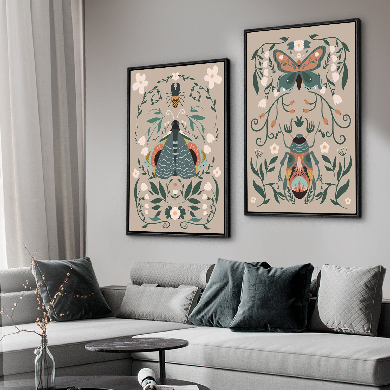 Framed Canvas Print Wall Art Set Butterfly Insect Bohemian Art Room Decoration Painting
