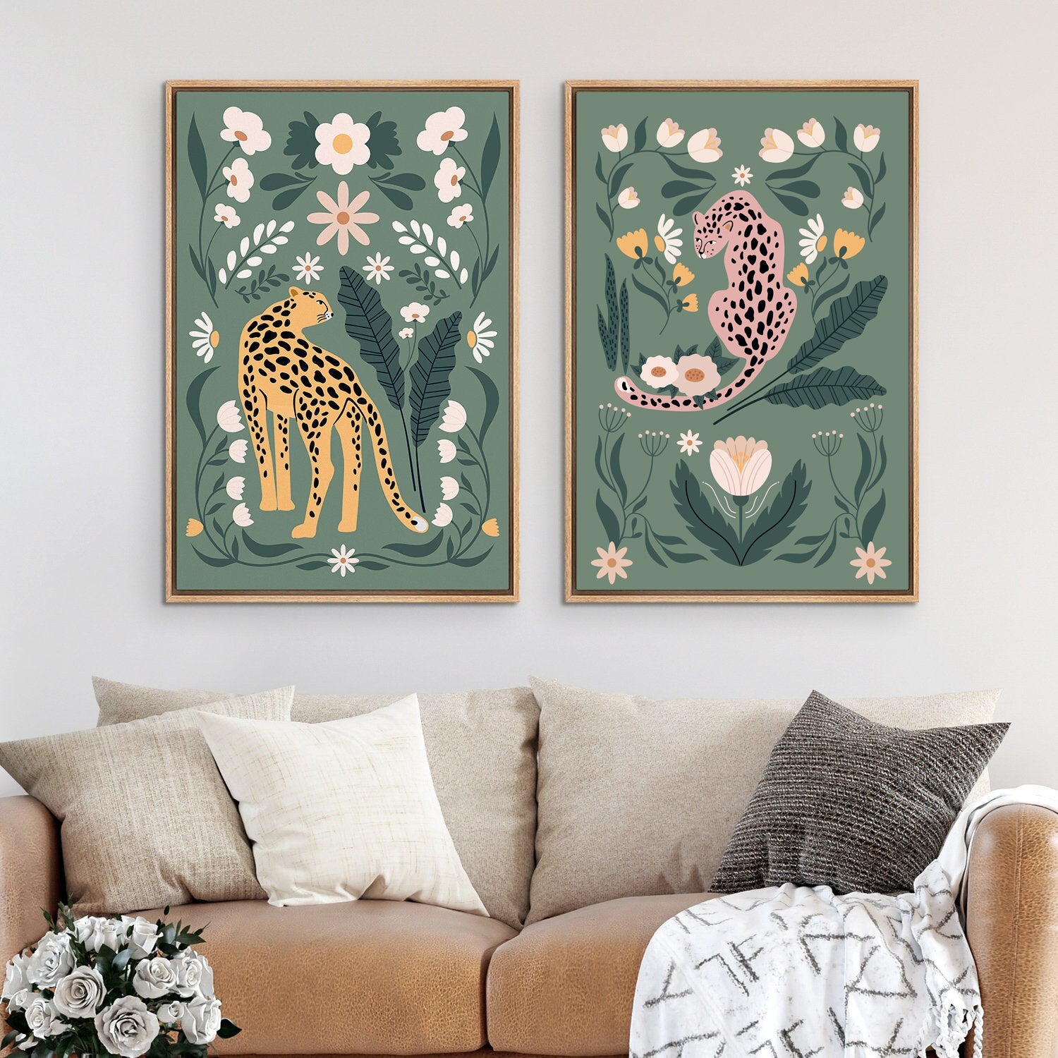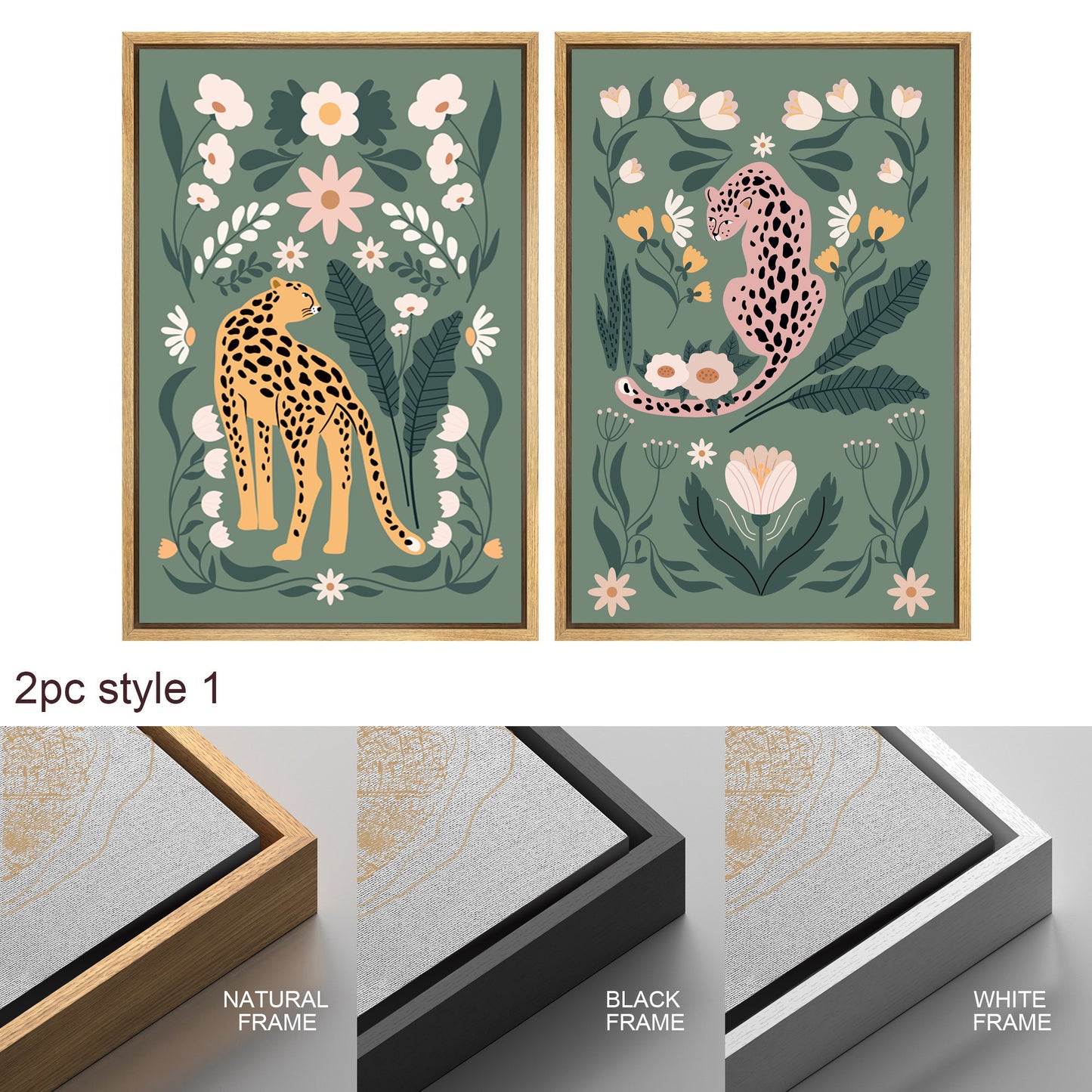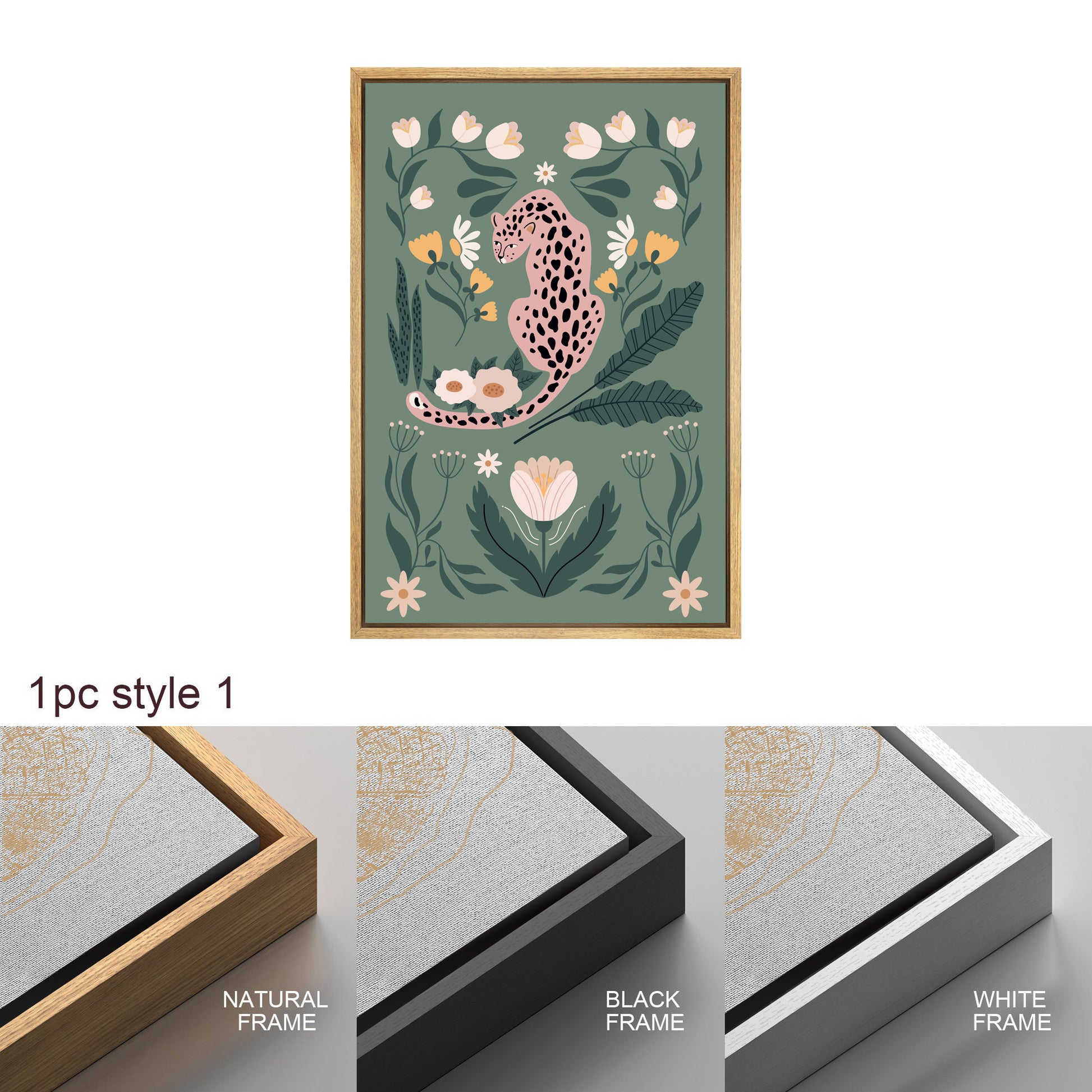 Framed Canvas Print Wall Art Set Cartoon Tiger Plant Bohemian Art Room Decoration Painting