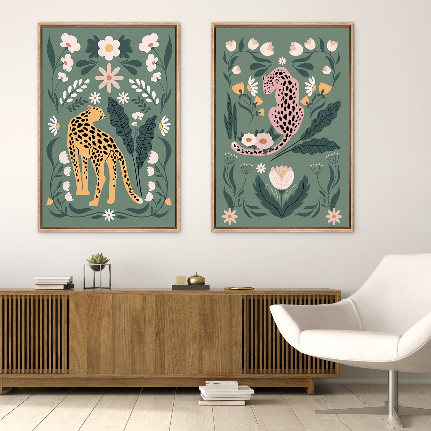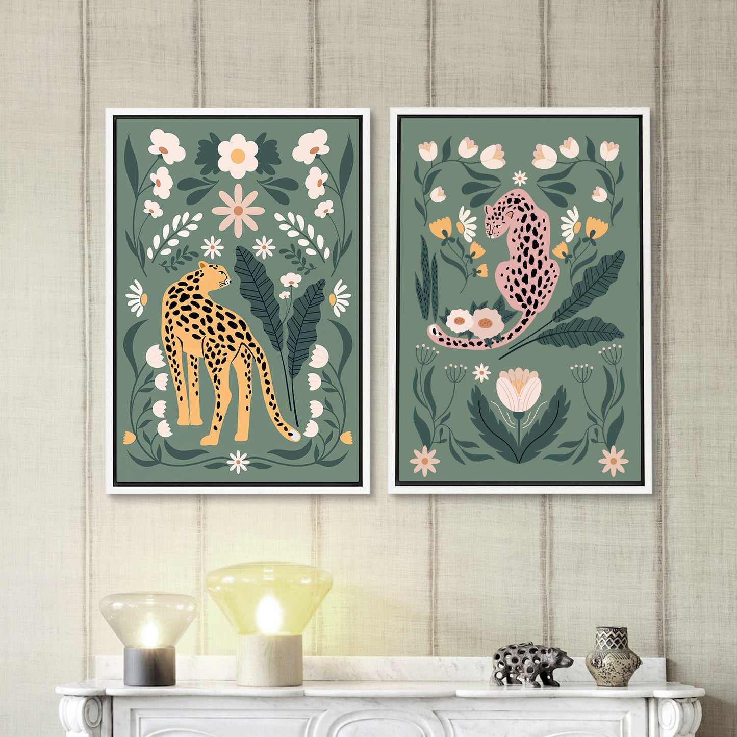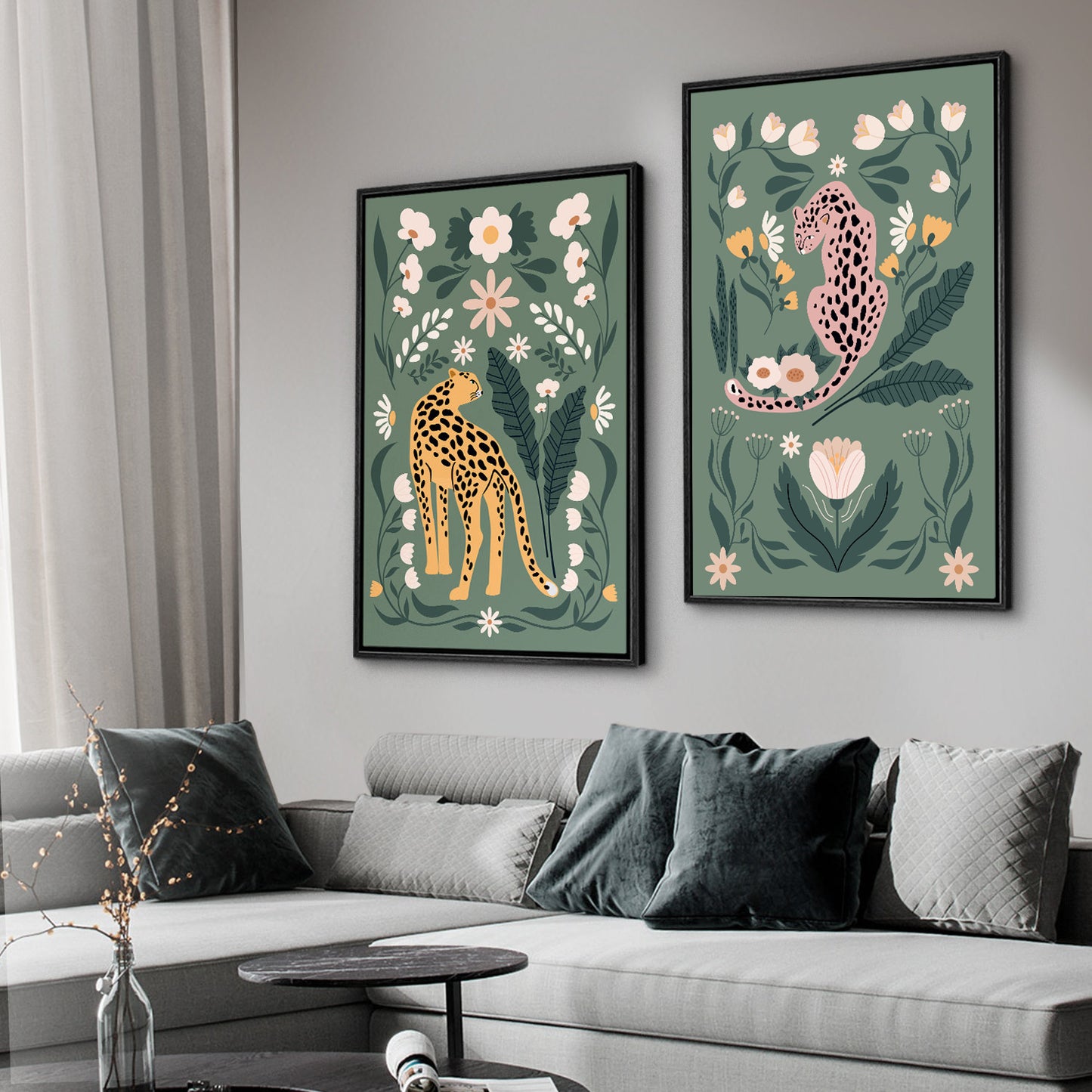 Framed Canvas Print Wall Art Set Cartoon Tiger Plant Bohemian Art Room Decoration Painting