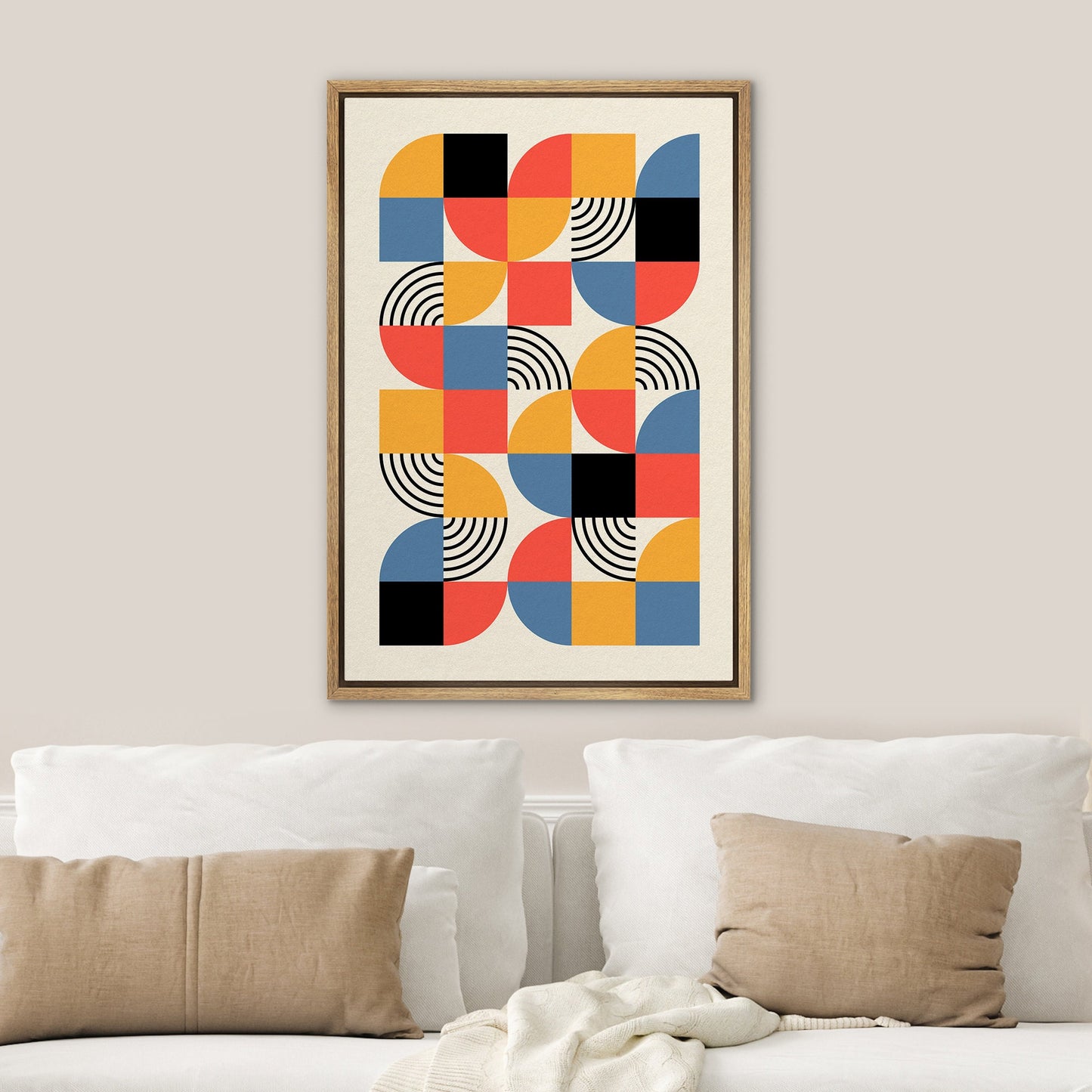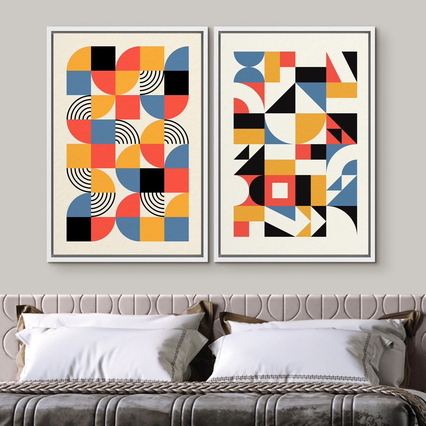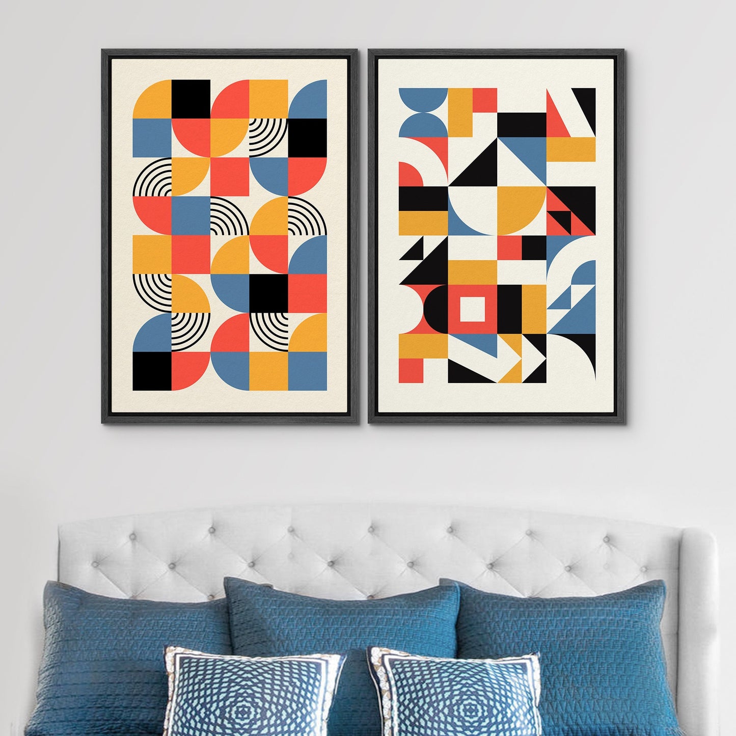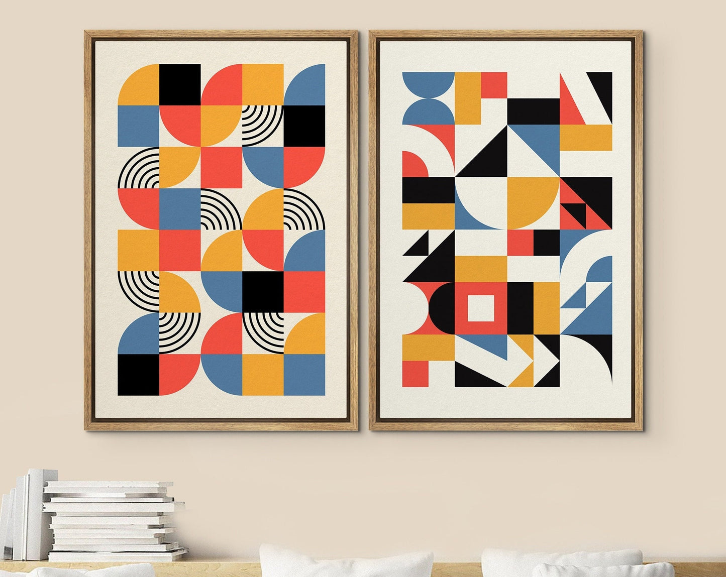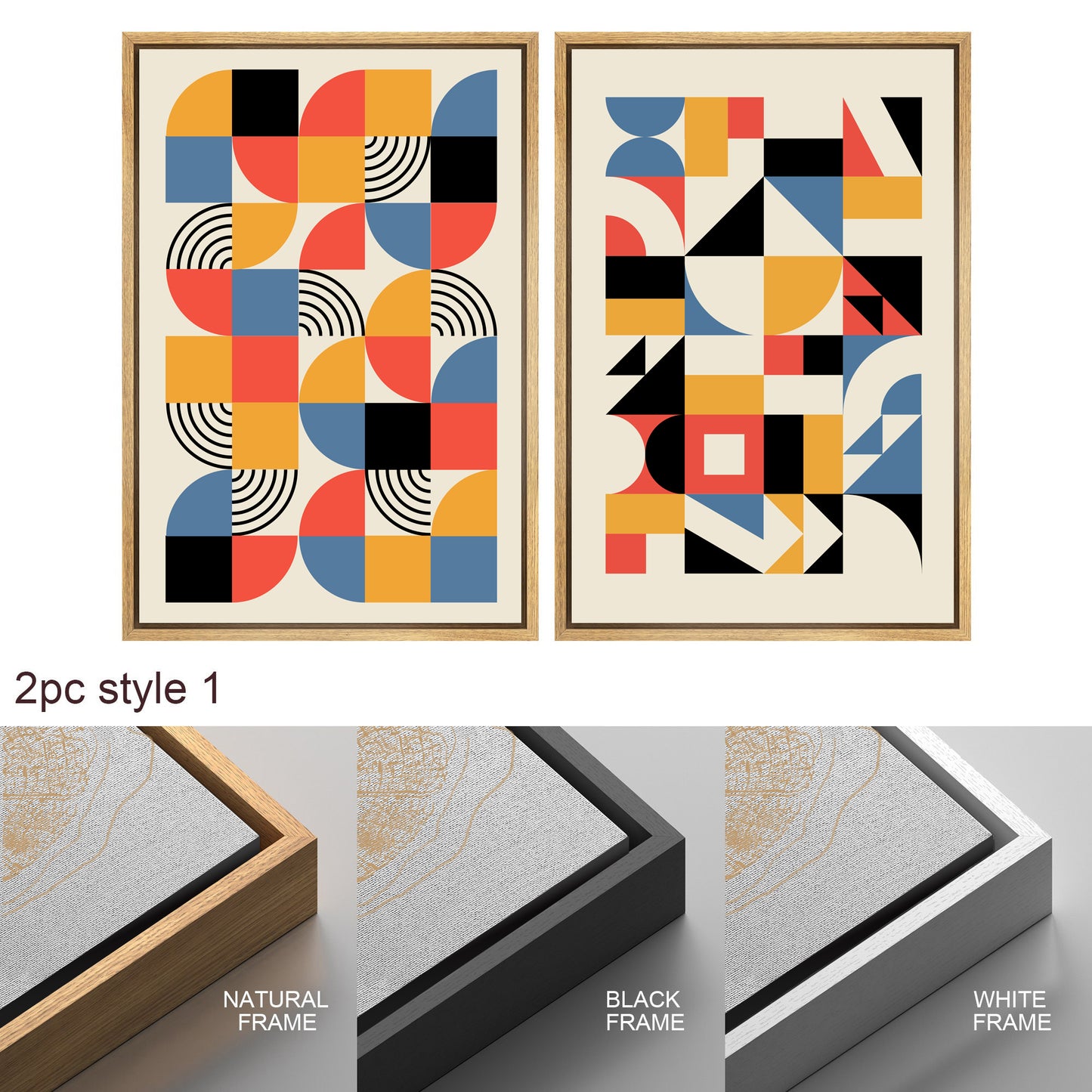Framed Canvas Print Wall Art Set Colorful Geometric Abstract Illustrations Mid Century Modern Wall Art Minimalist Decor