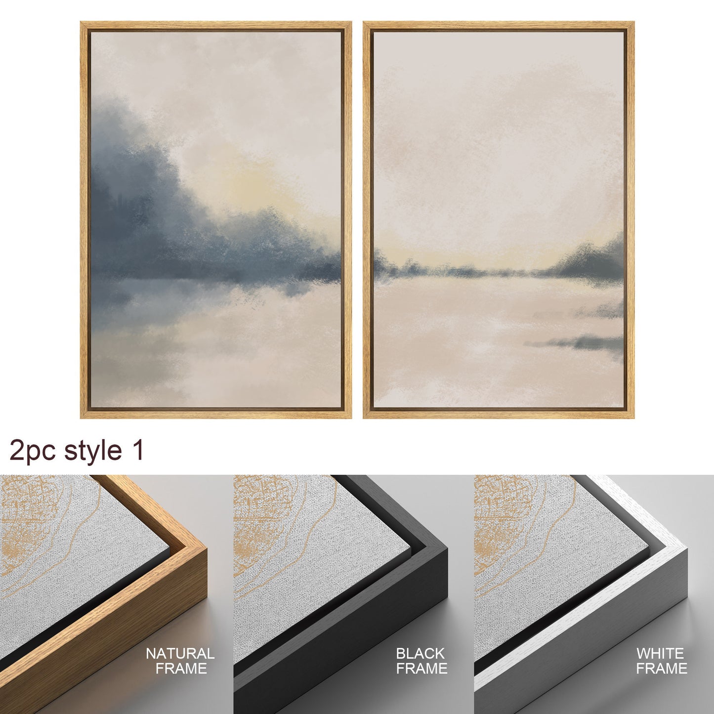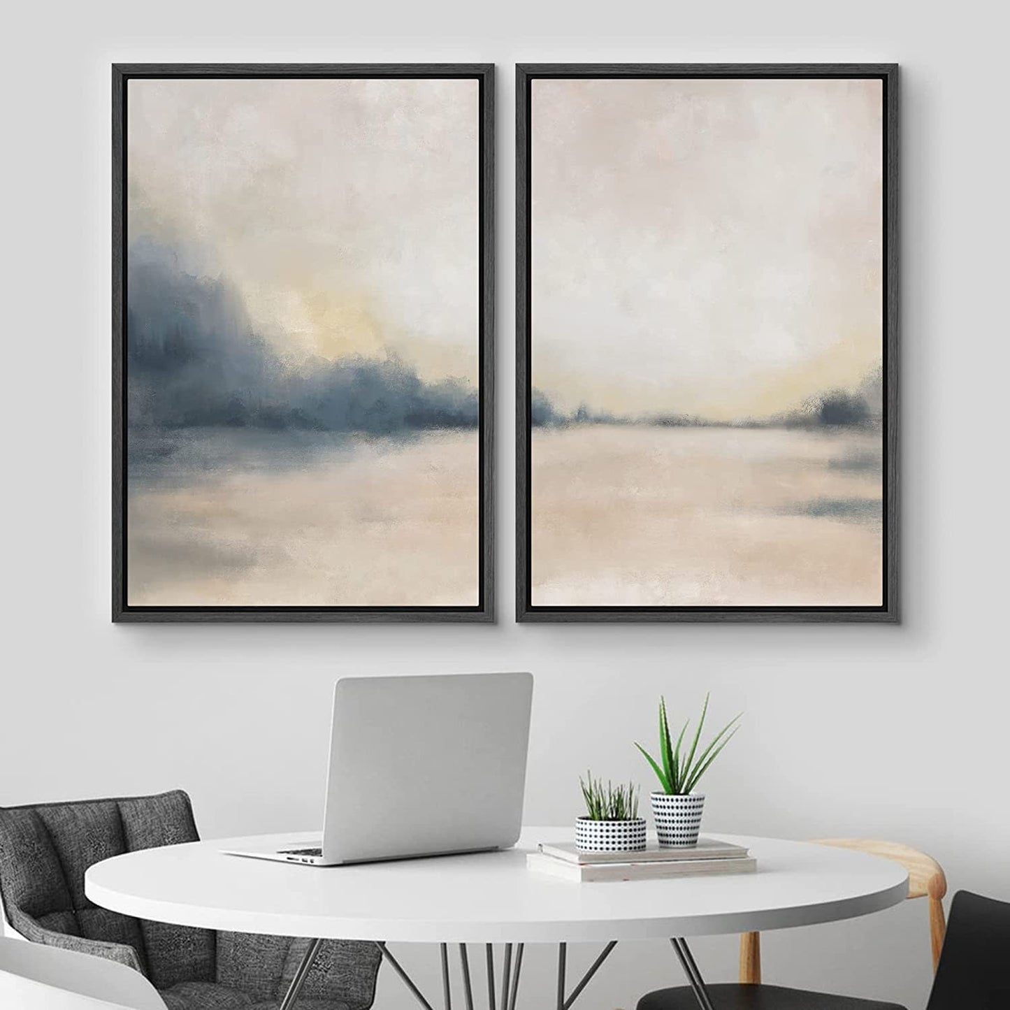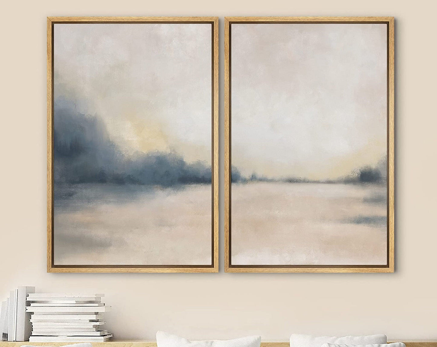 Framed Canvas Print Wall Art Set of 2 Pastel Gray Tan Abstract Landscape Modern Art Neutral Minimalist Decor
