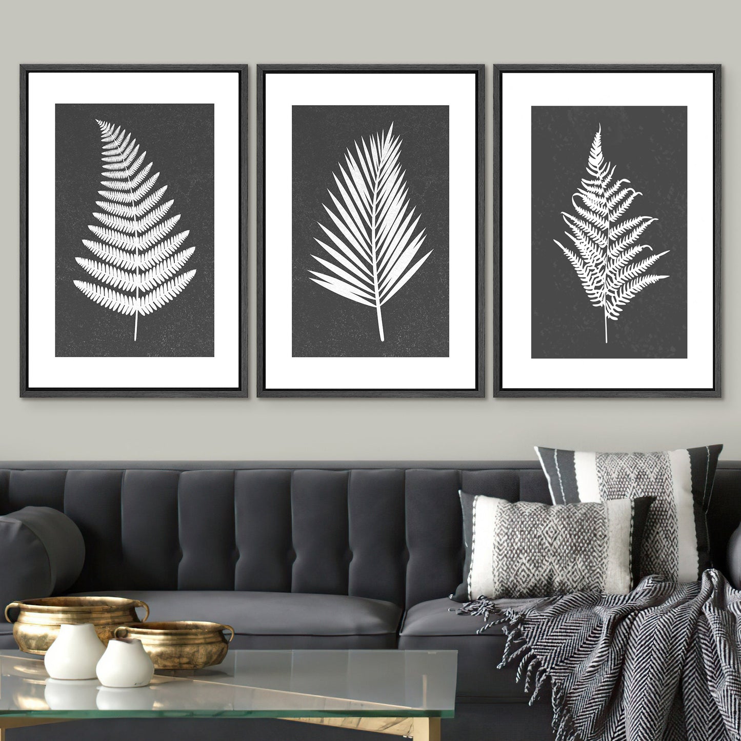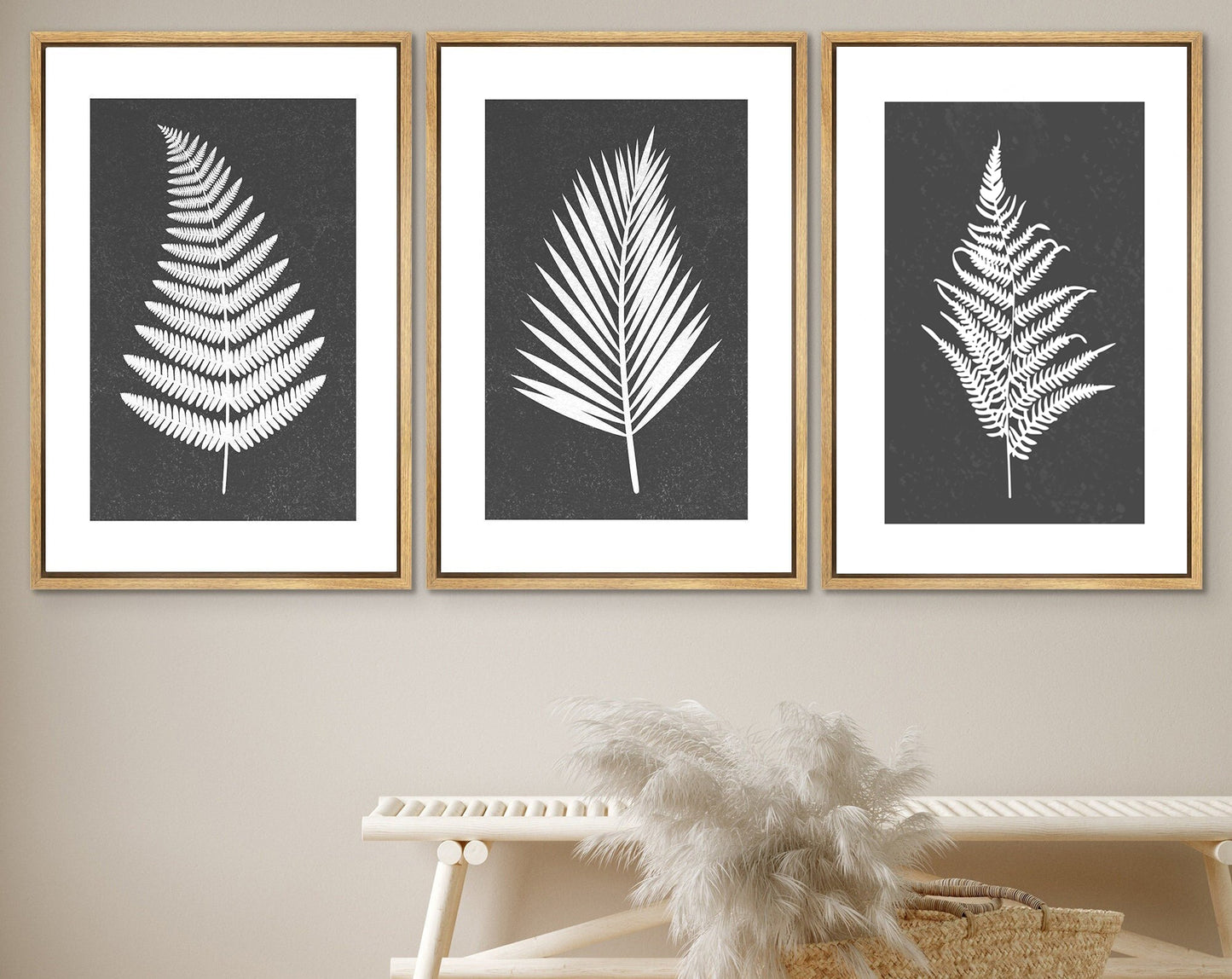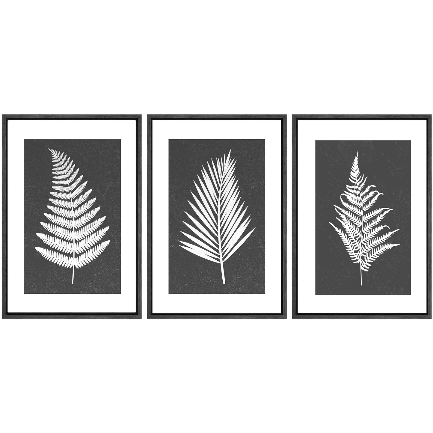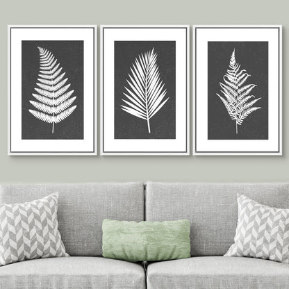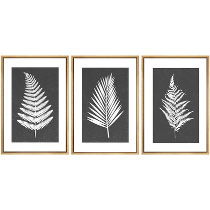 Framed Canvas Print Wall Art Set of 3 Black and White Leaves Botanical Illustrations Minimalist Art Modern Farmhouse Wall Decor