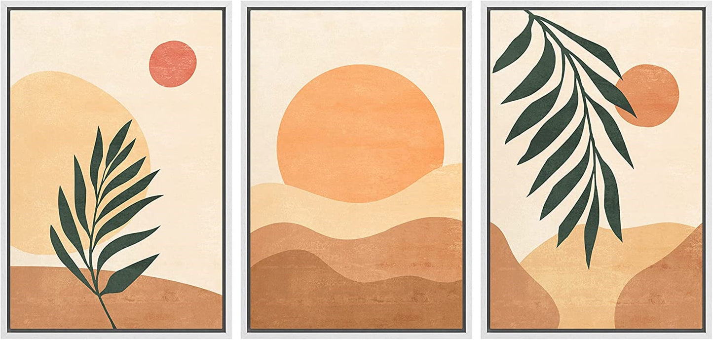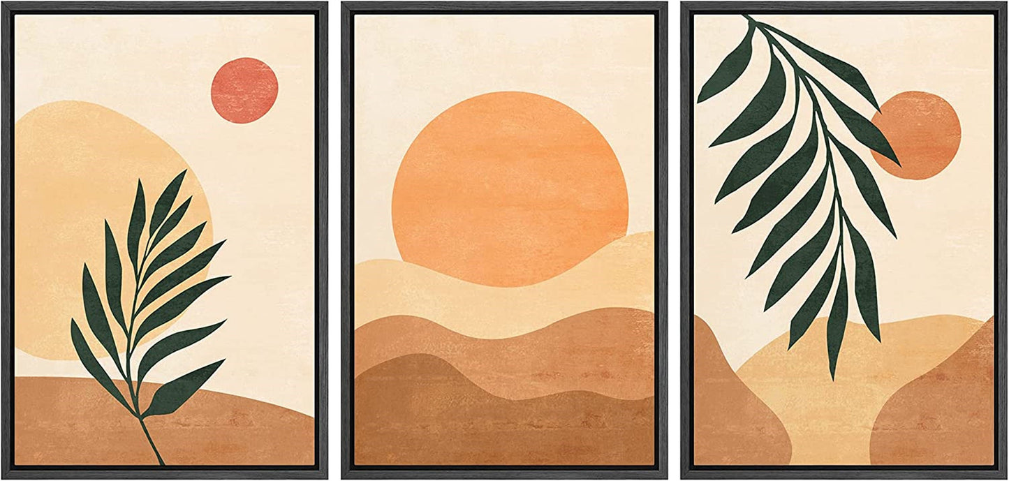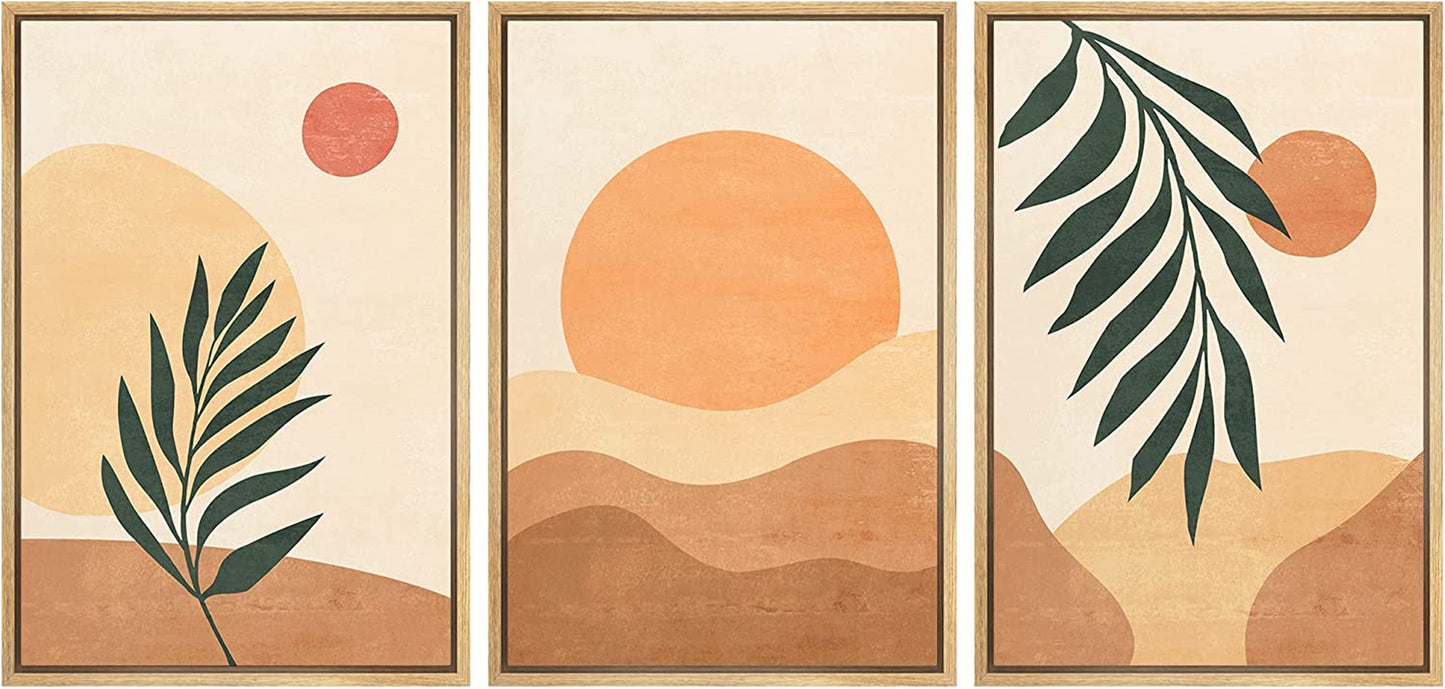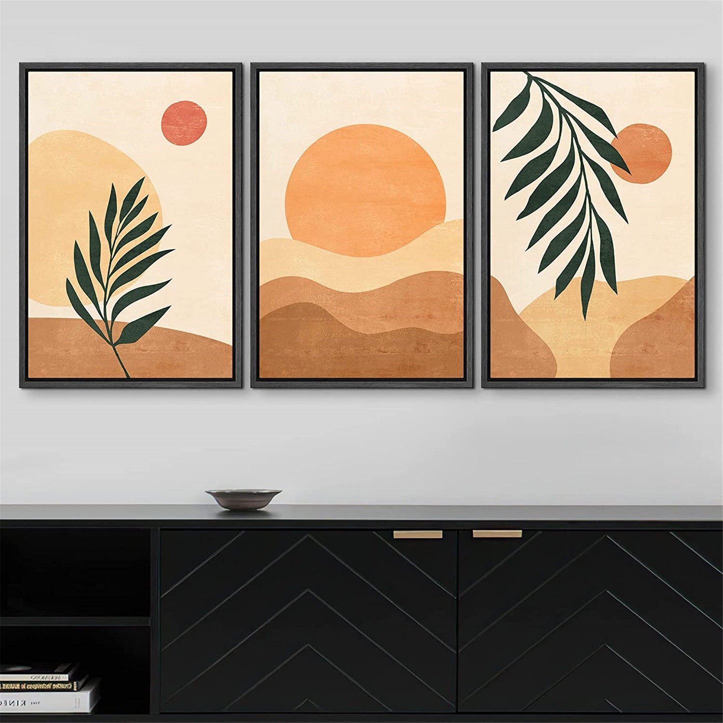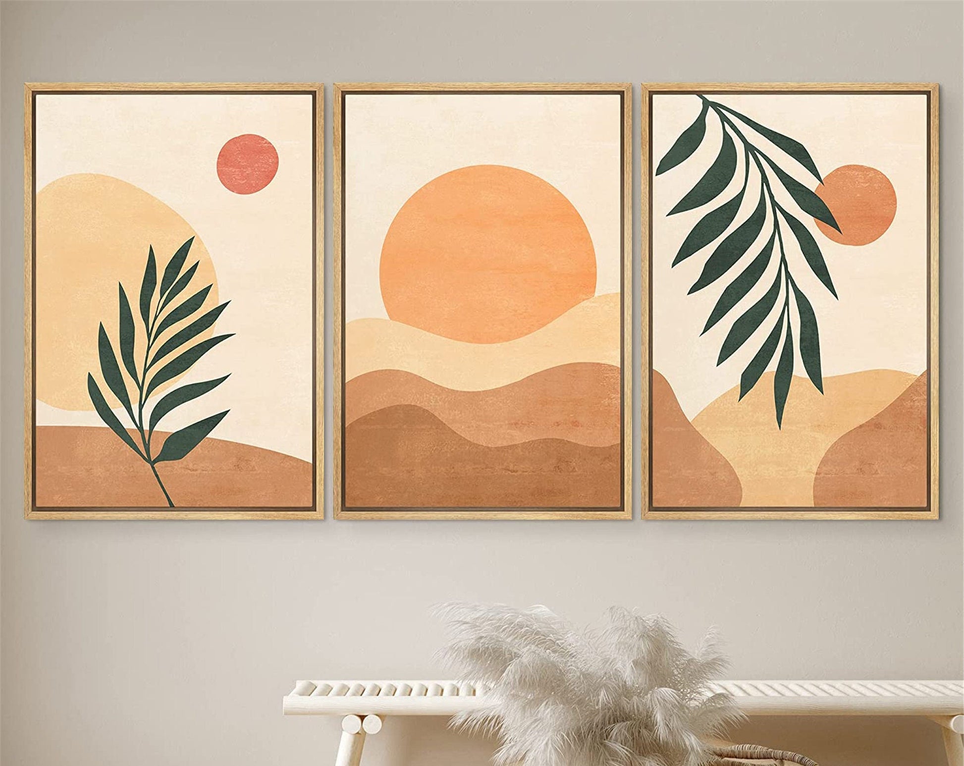 Framed Canvas Print Wall Art Set of 3 Geometric Arch Desert Plants Abstract Illustration Mid Century Modern Art Boho Decor