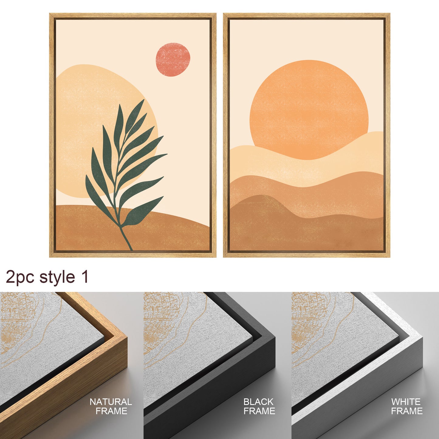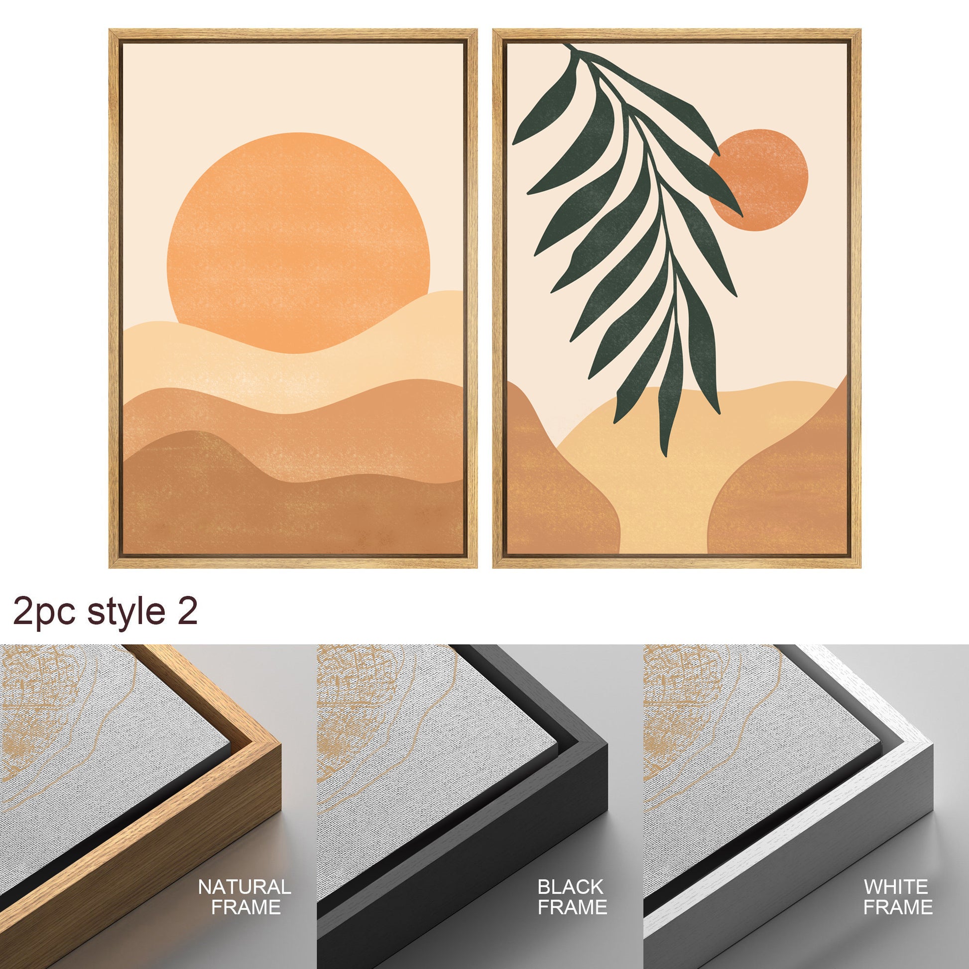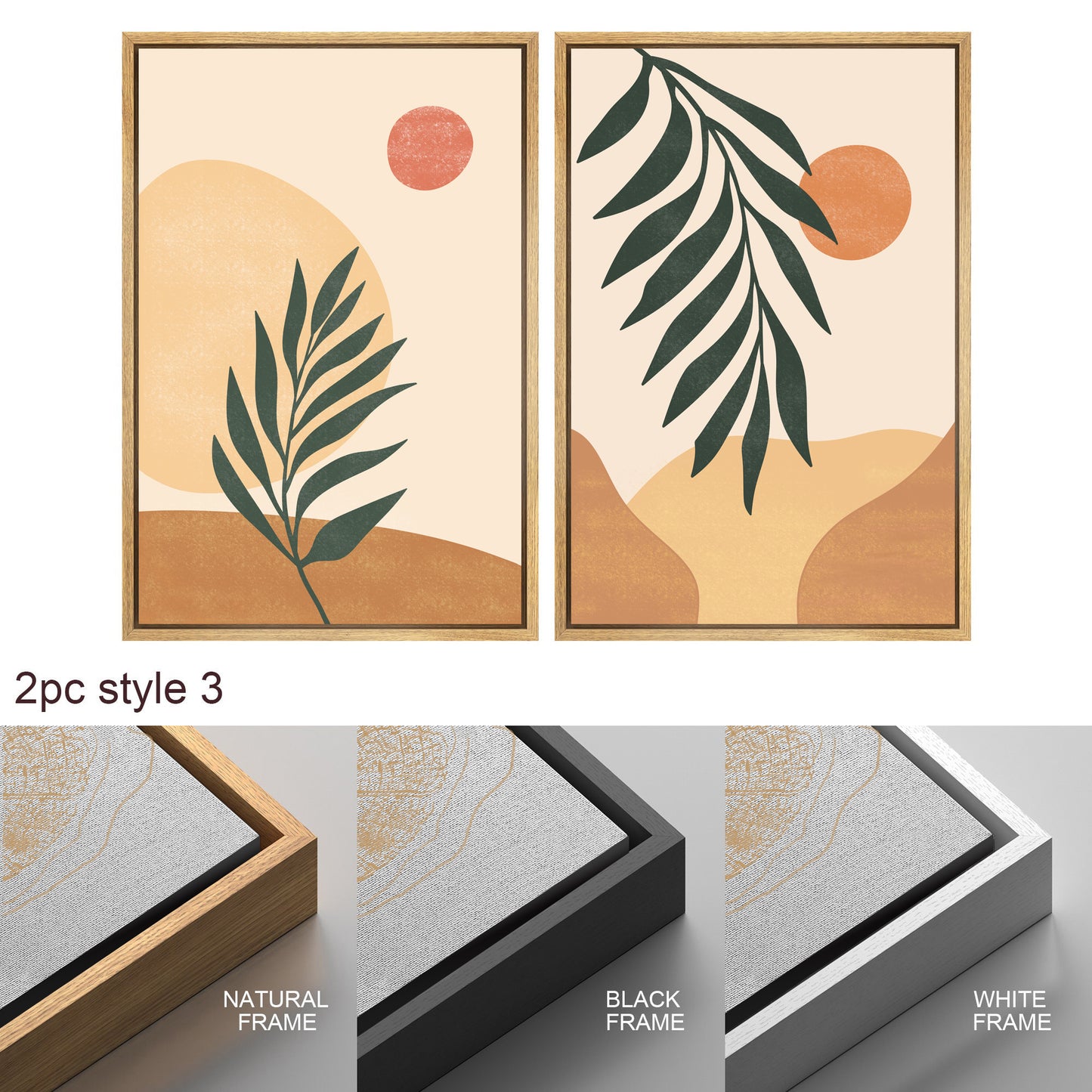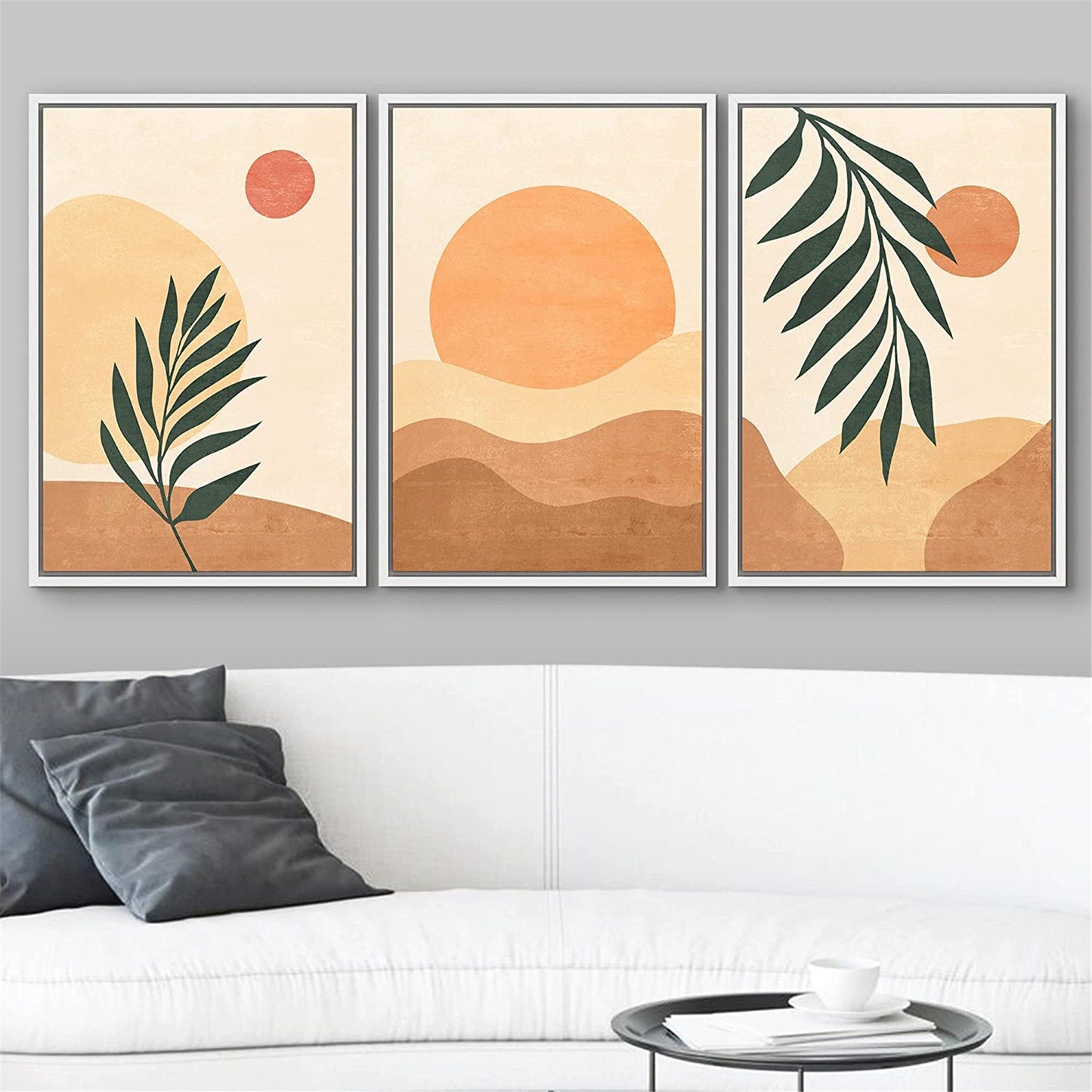 Framed Canvas Print Wall Art Set of 3 Geometric Arch Desert Plants Abstract Illustration Mid Century Modern Art Boho Decor