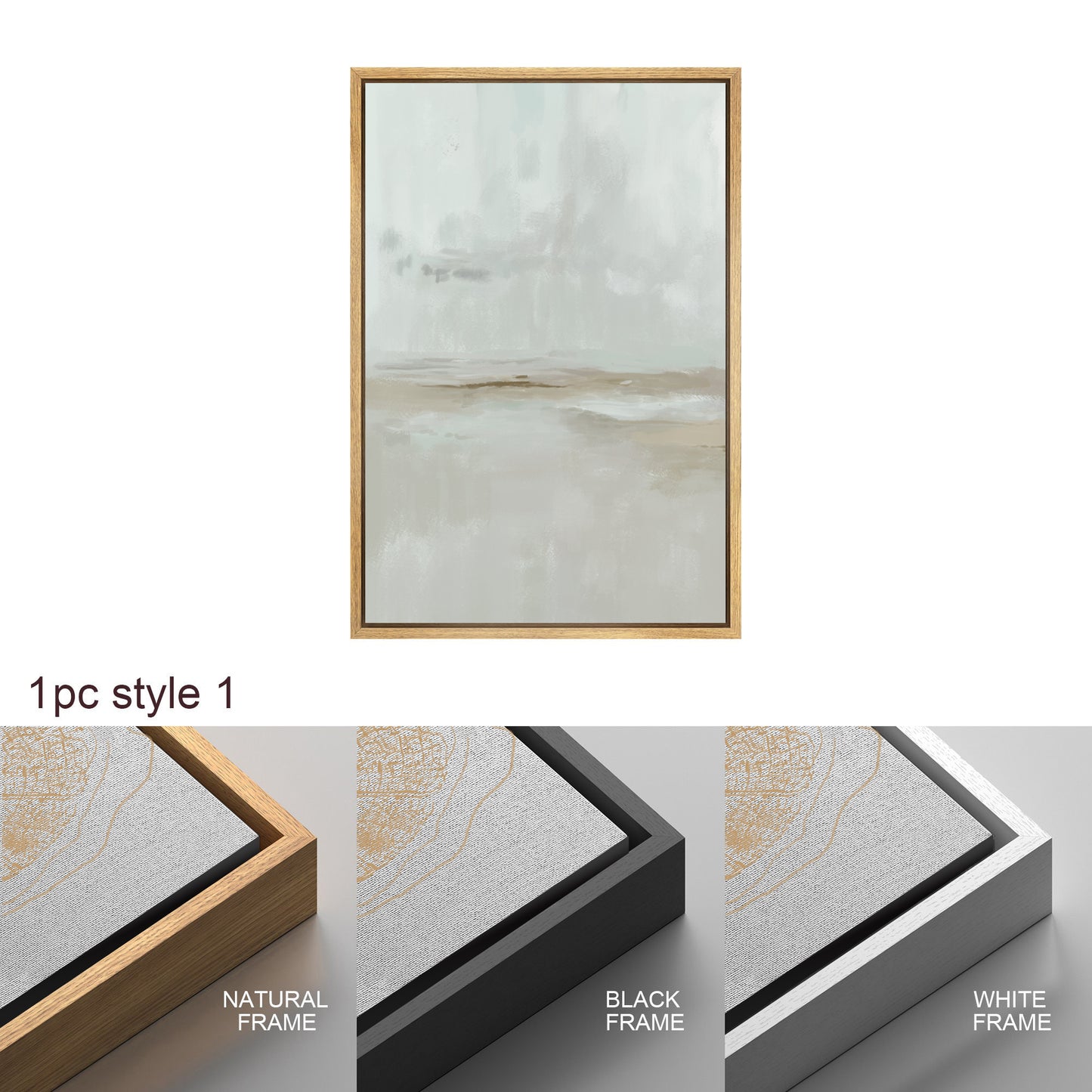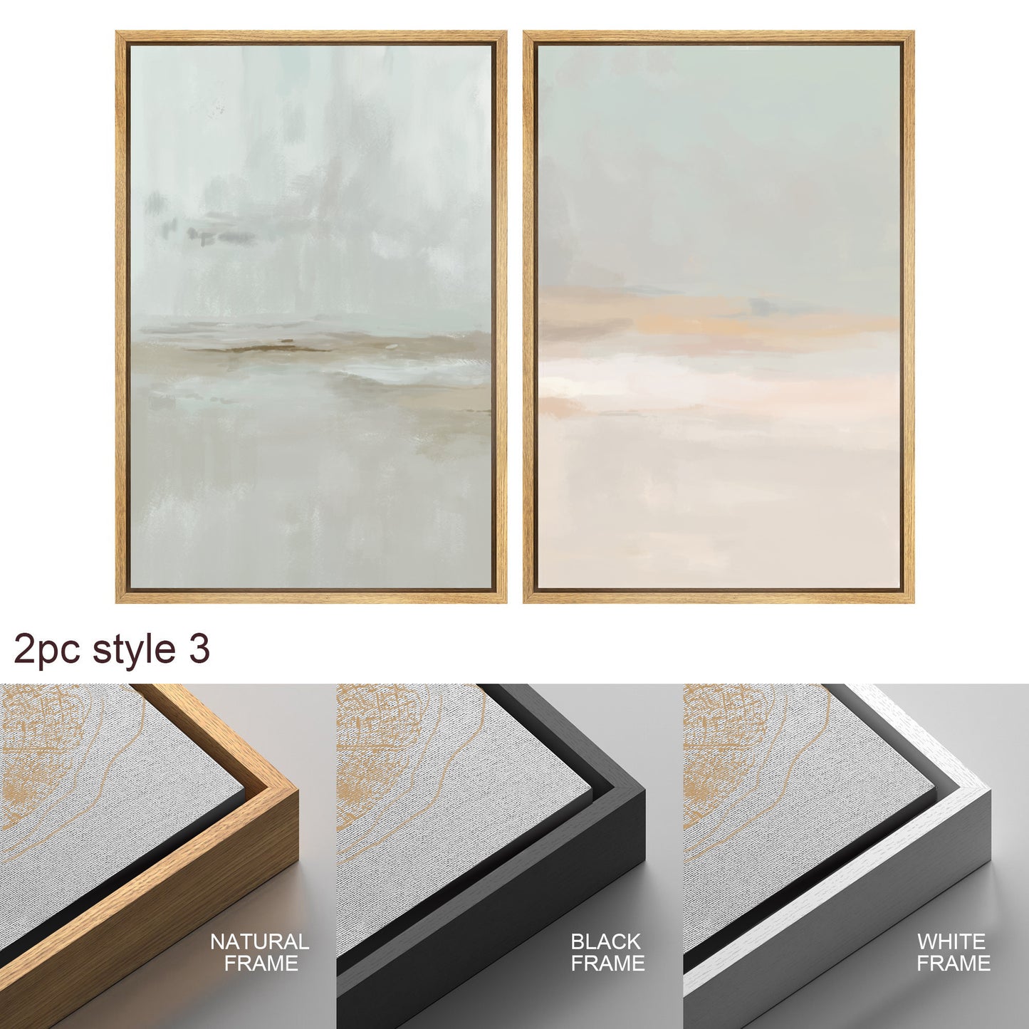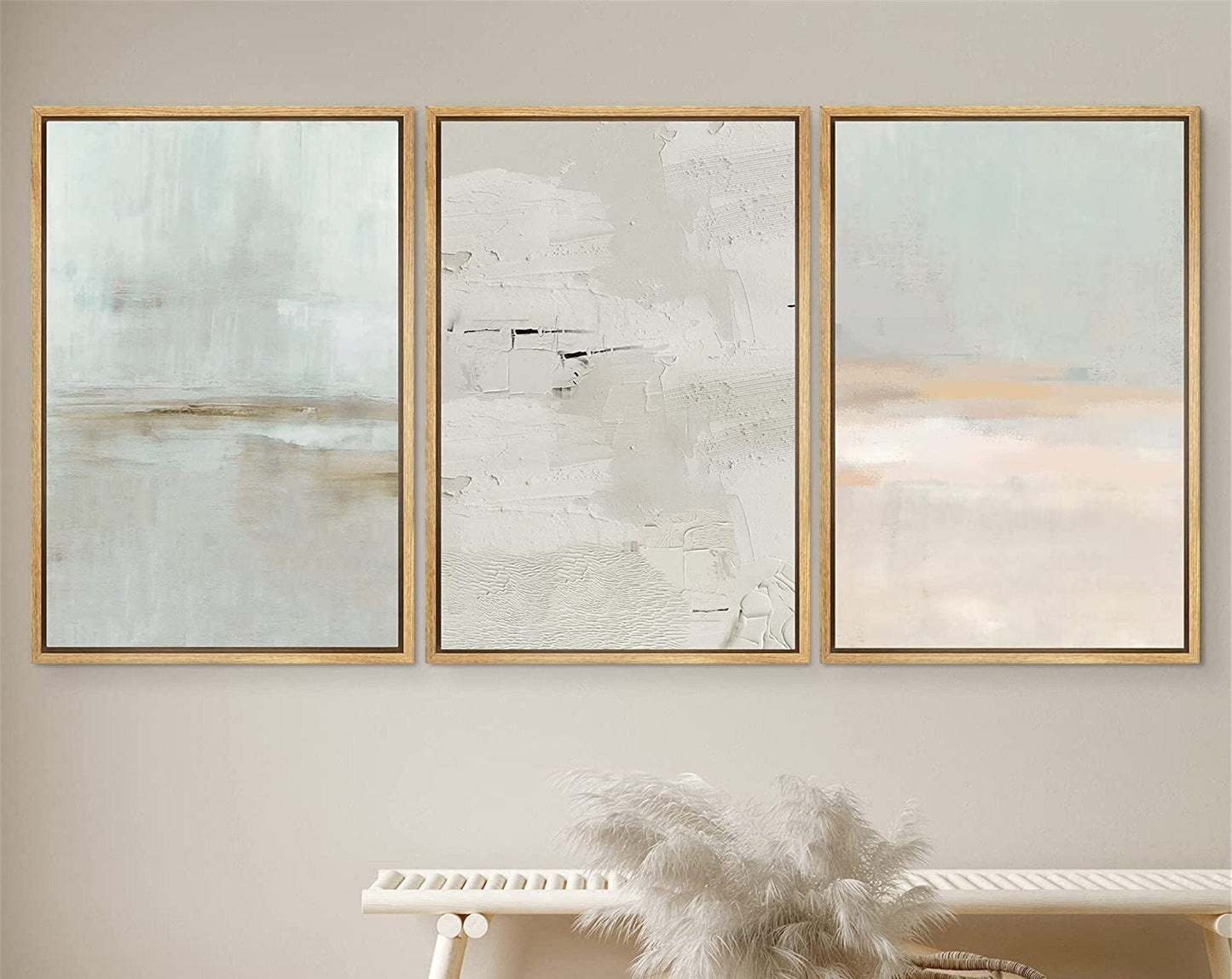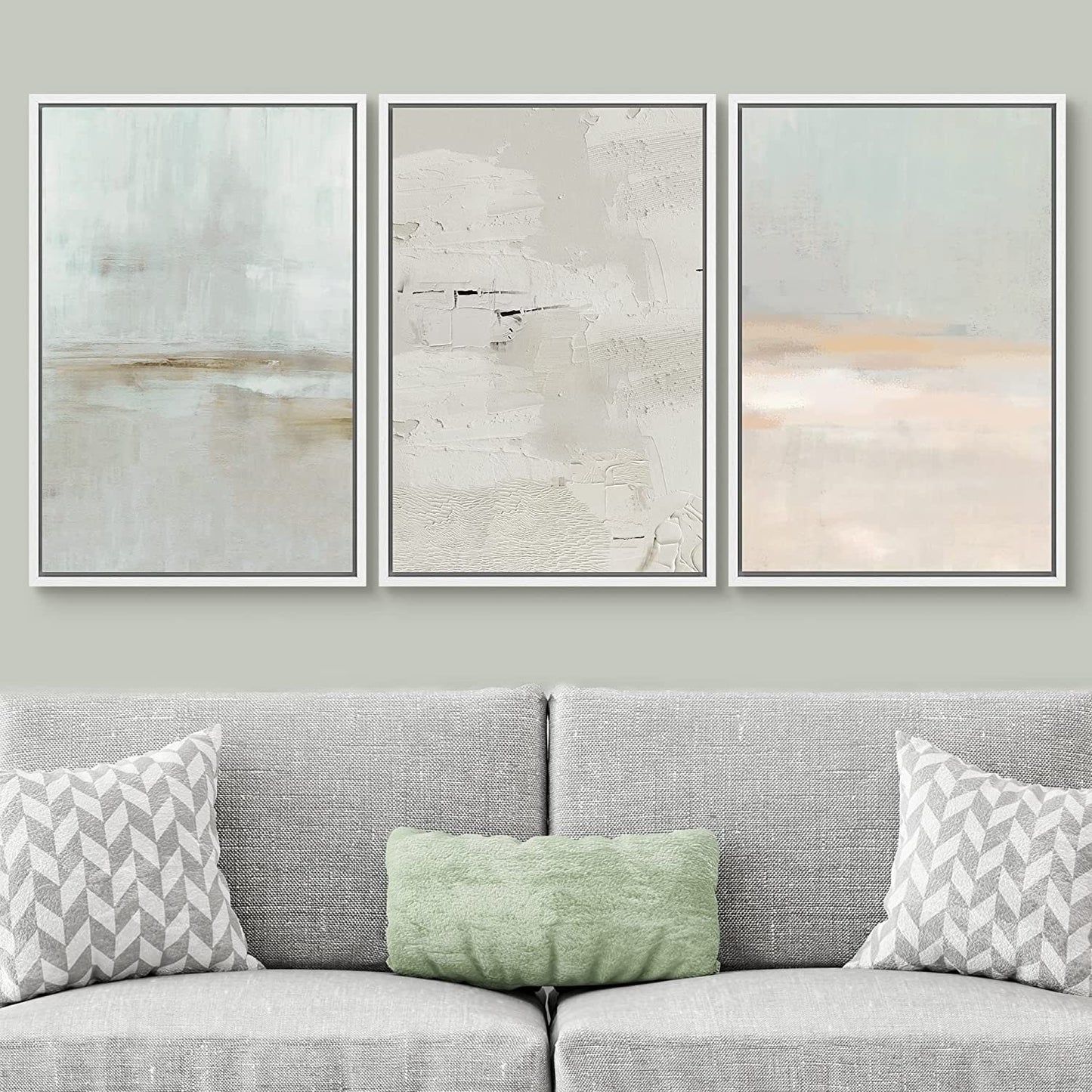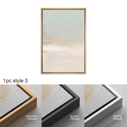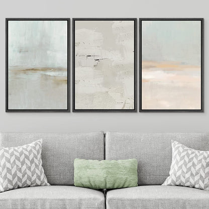 Framed Canvas Print Wall Art Set Teal Beige Gray Pastel Abstract Painting Modern Art Minimalist Decor
