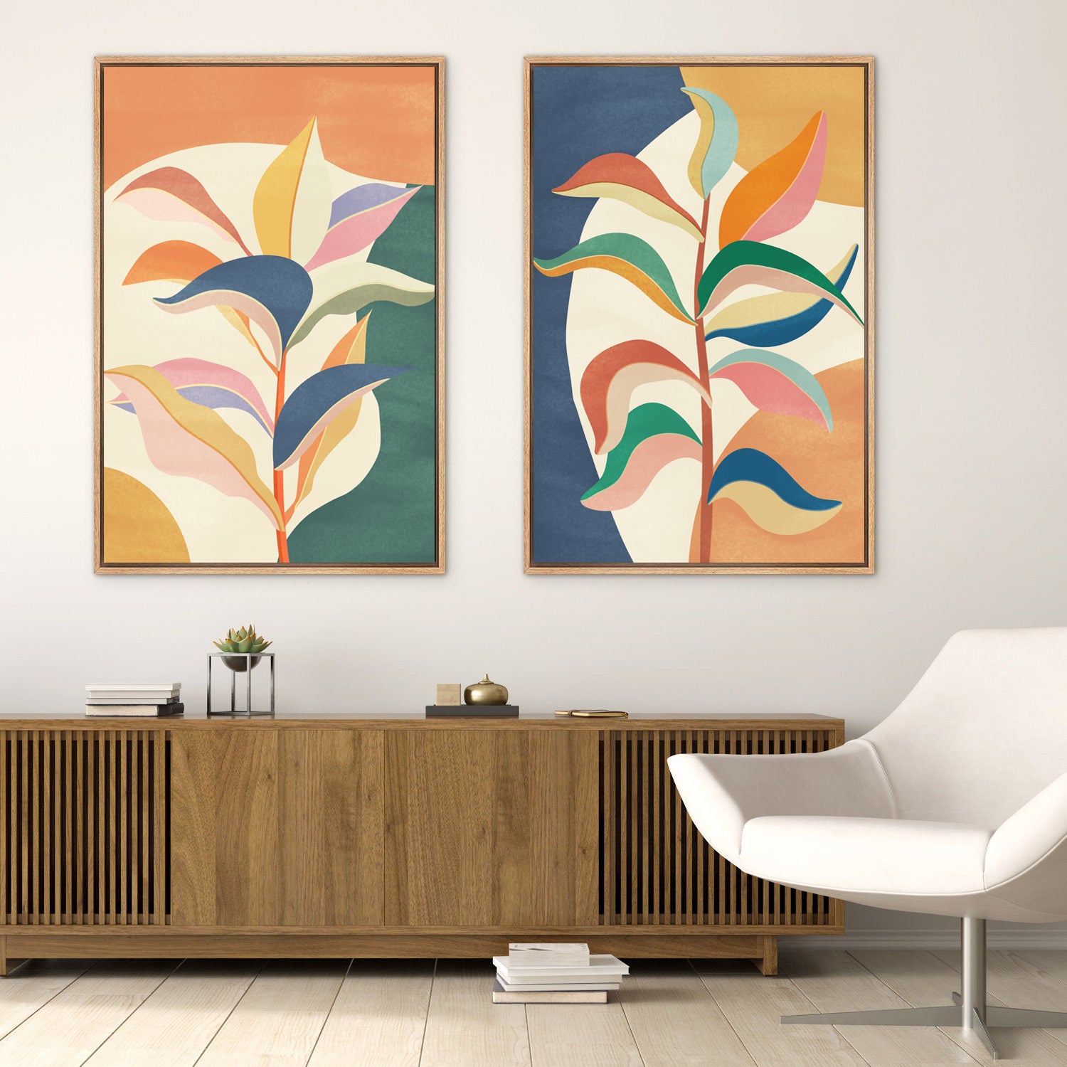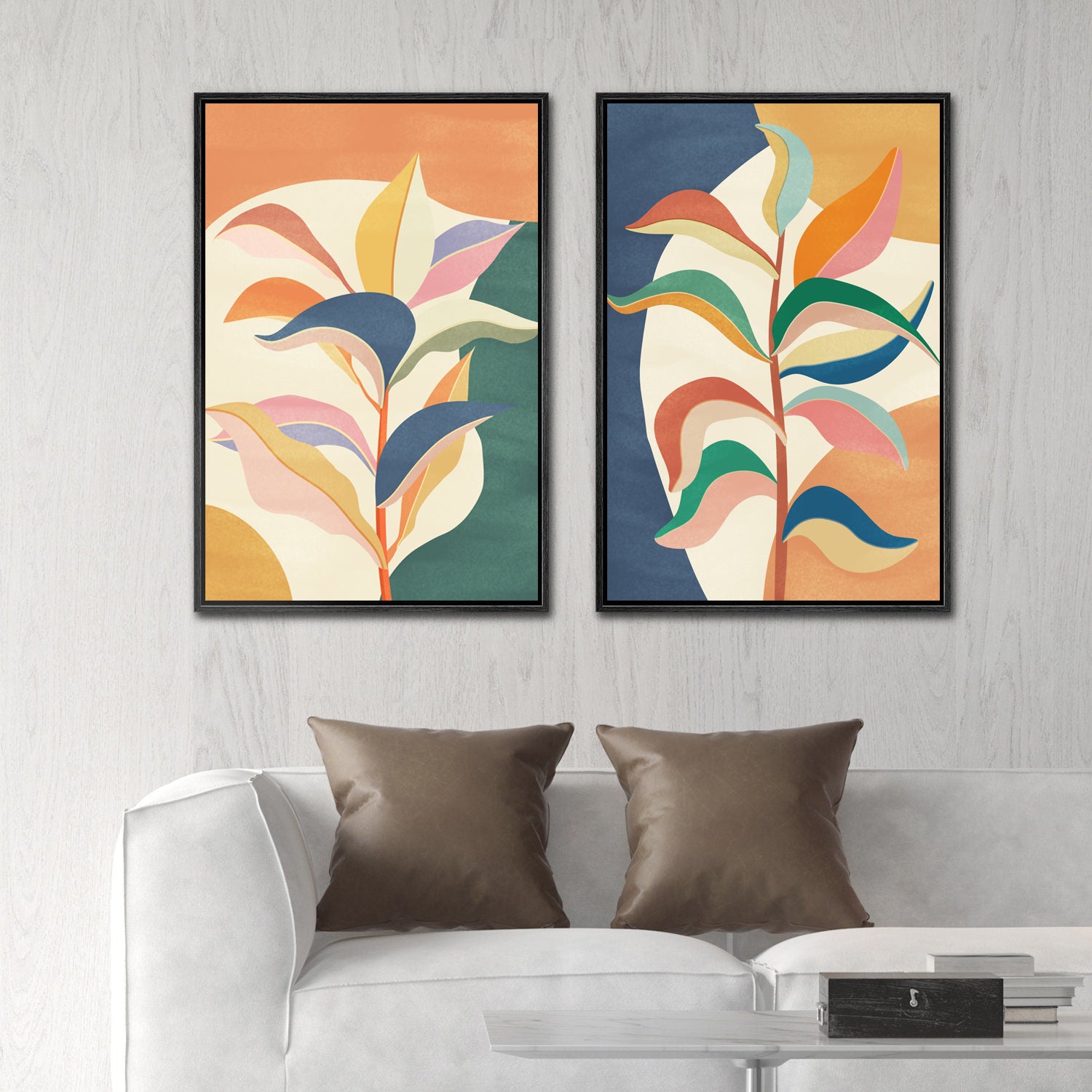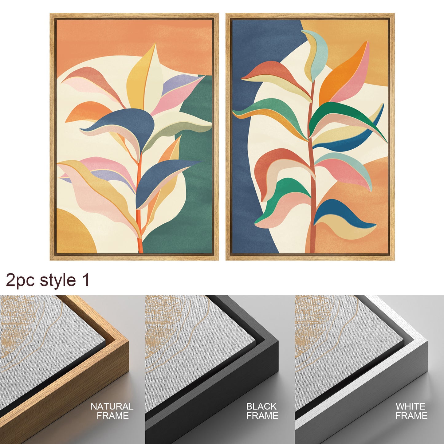 Framed Canvas Wall Art Set of 2 Colorful Tropical Jungle Leaf Botanical Prints Minimalist Modern Art Boho Wall Decor