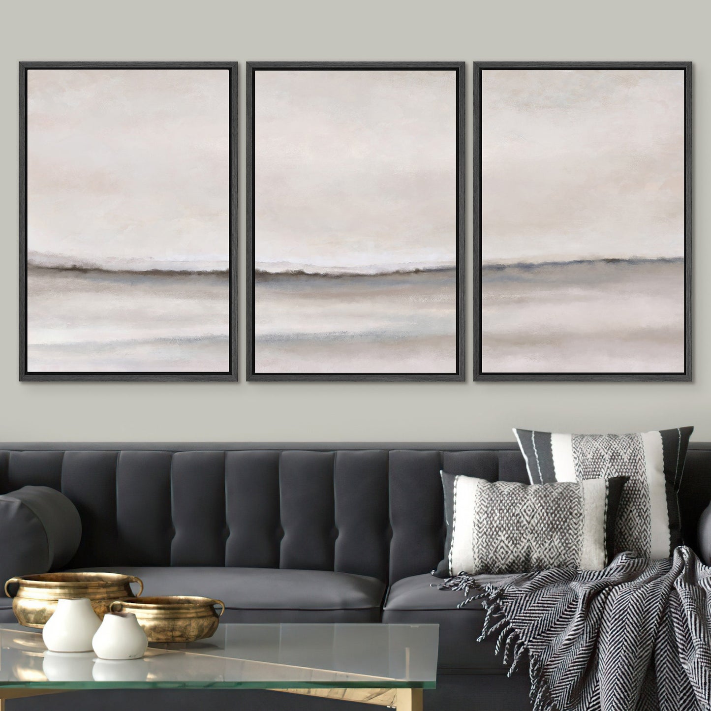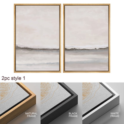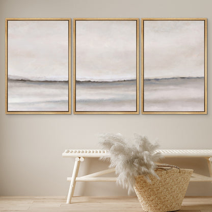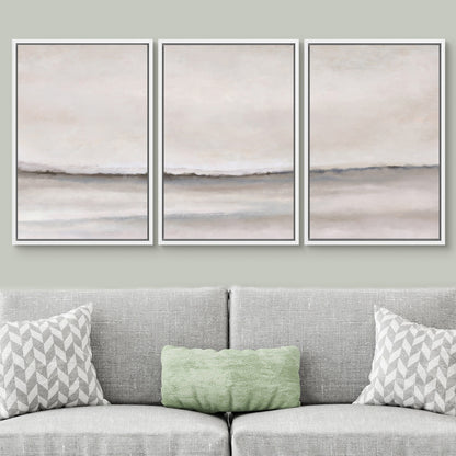 Framed Canvas Wall Art Set of 3 Brown Gray Abstract Prints Minimalist Modern Art Neutral Wall Decor