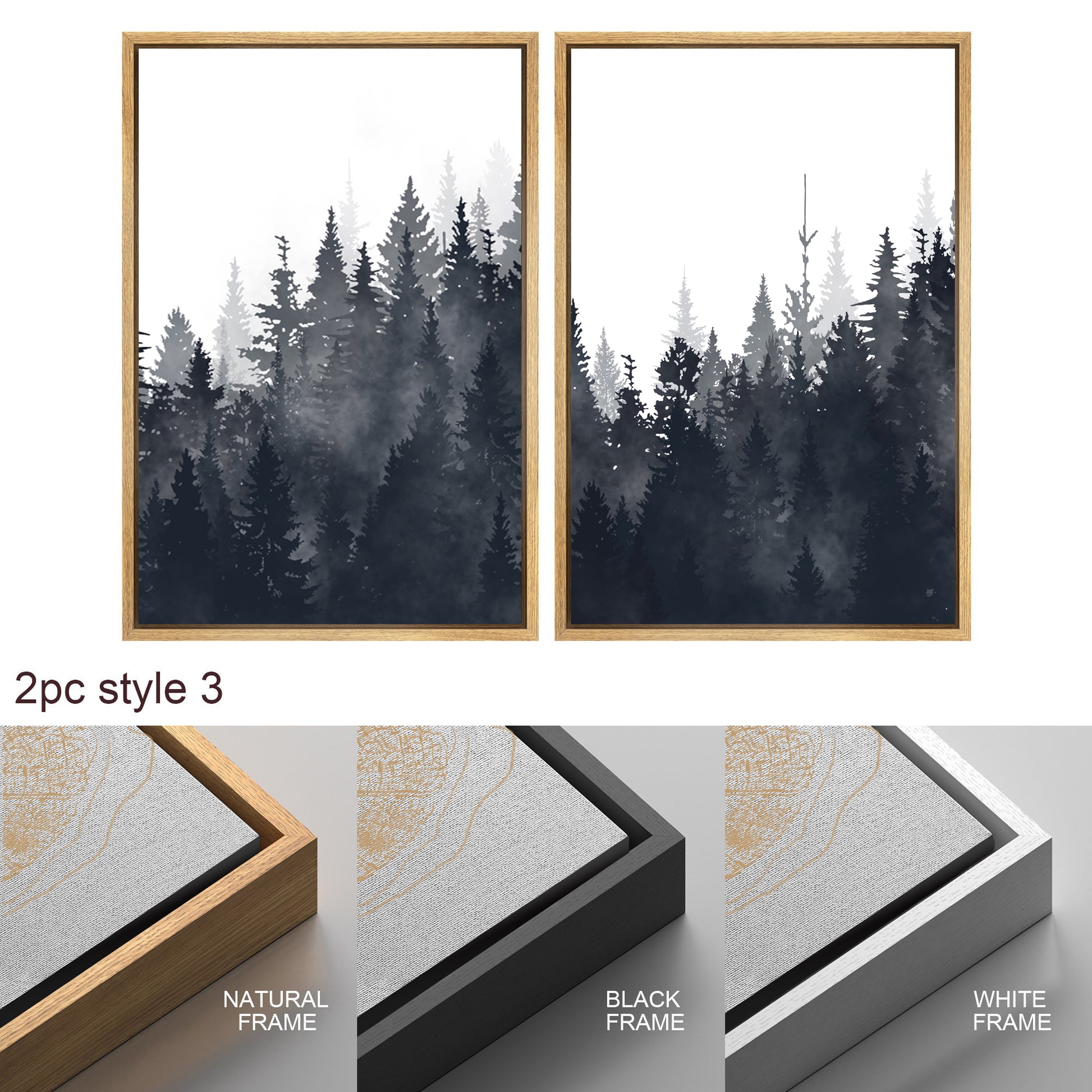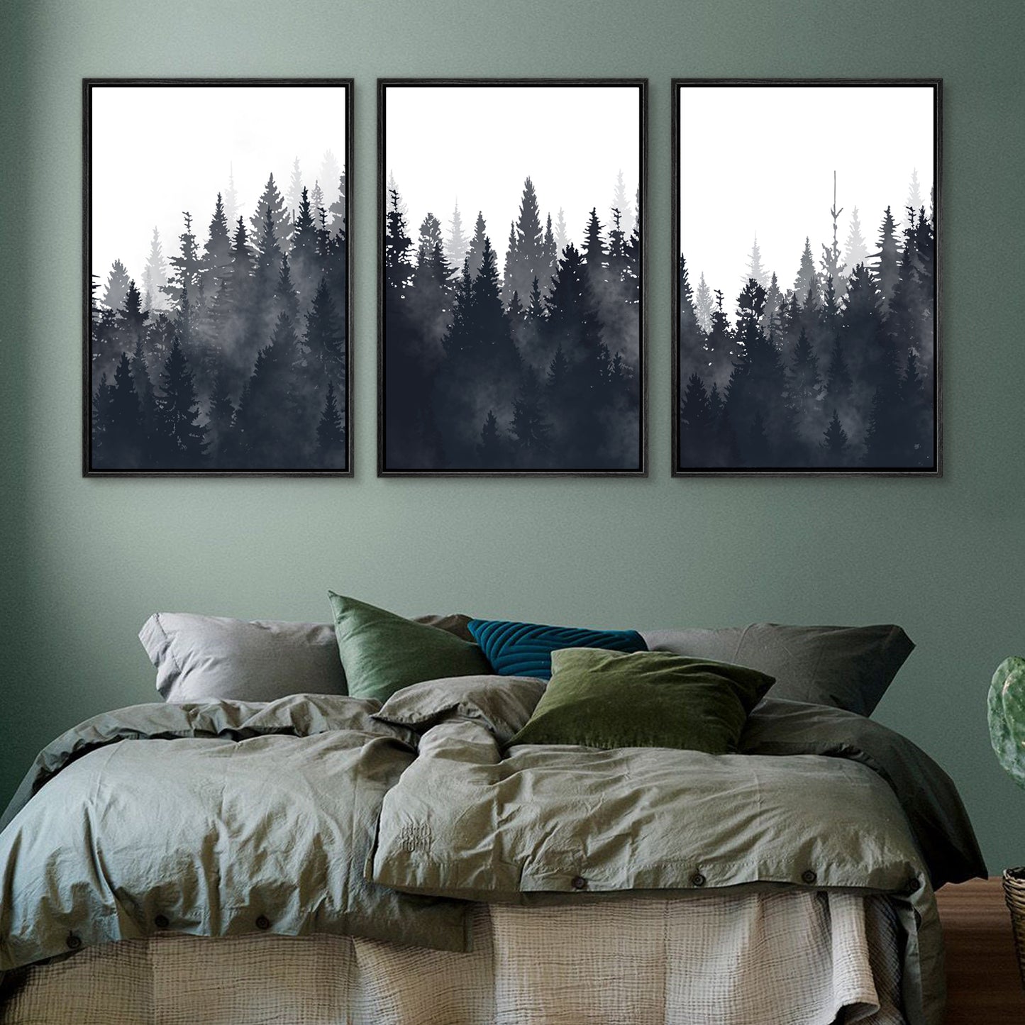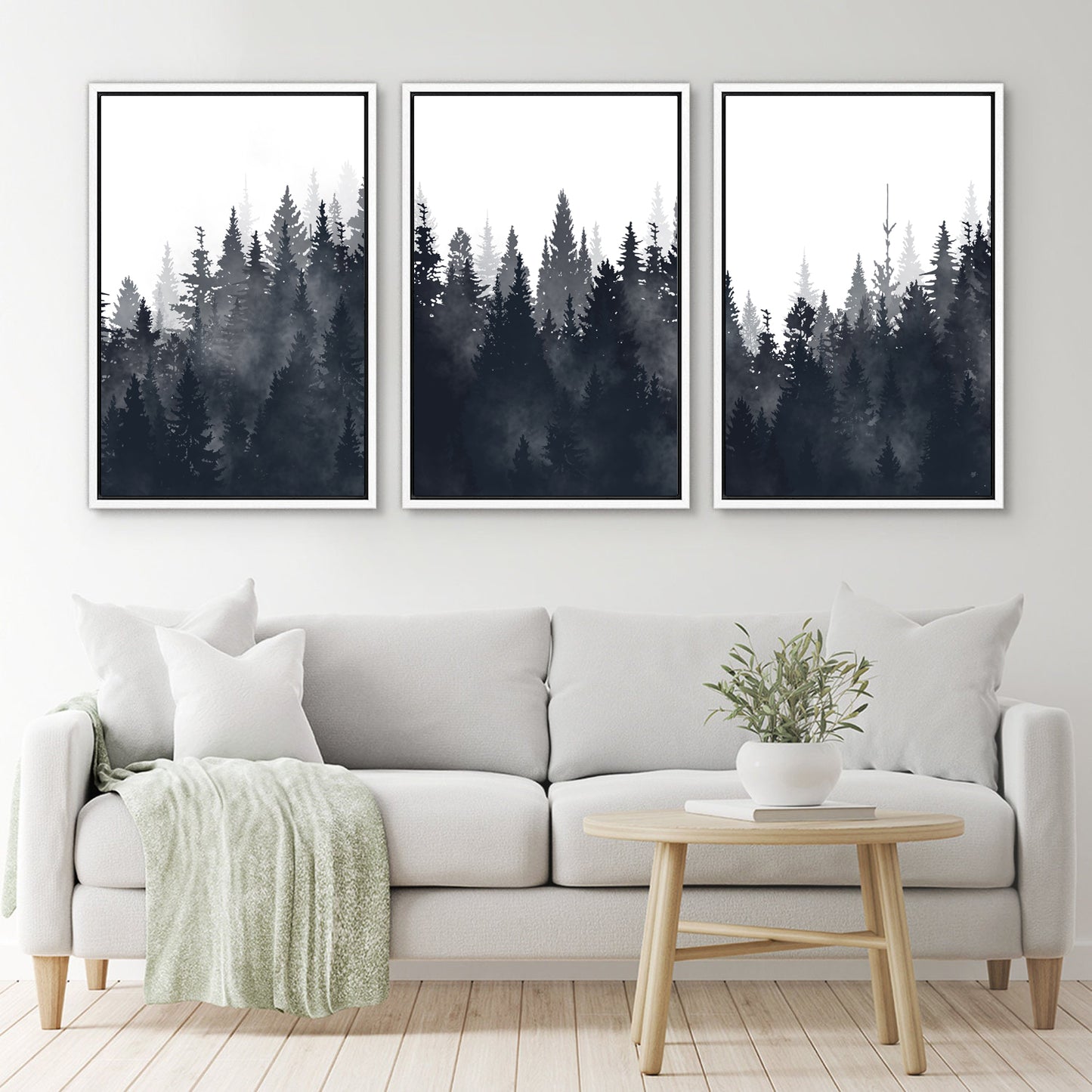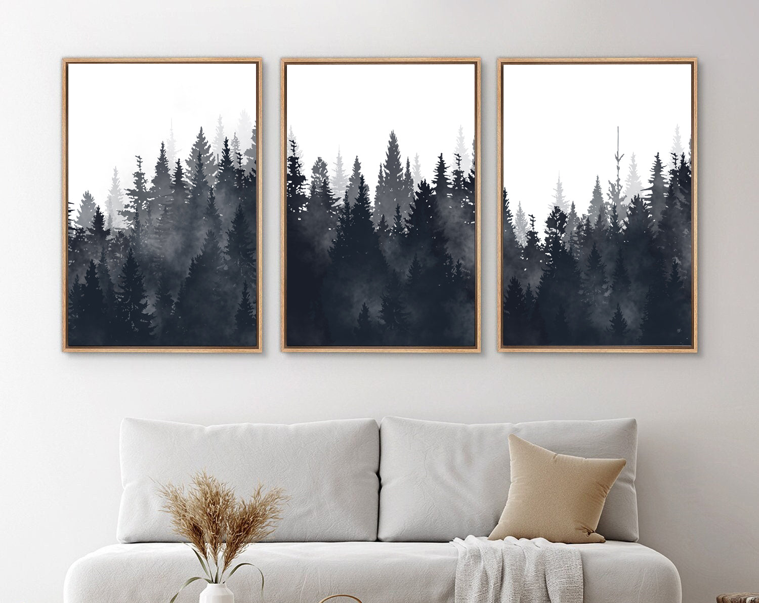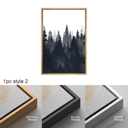 Framed Canvas Wall Art Set of 3 Misty Forest Mountain Landscape Print Modern Art Nature Wall Decor