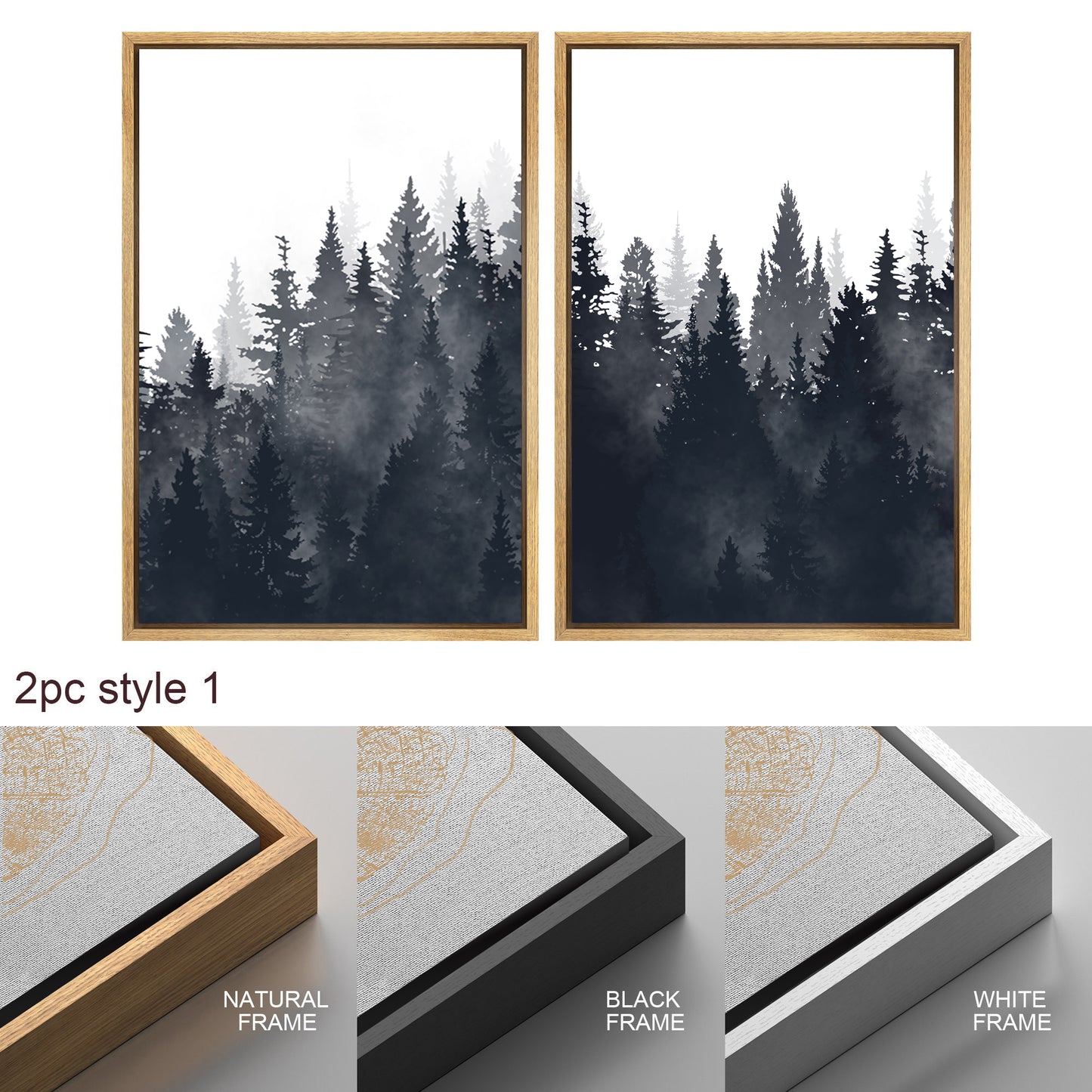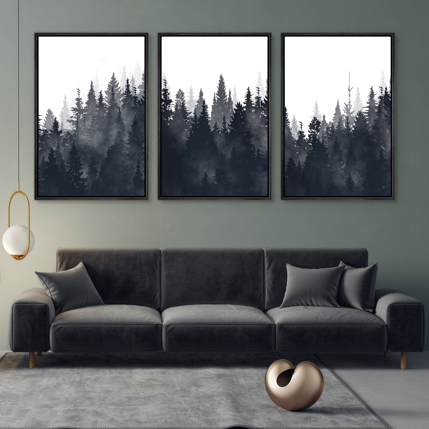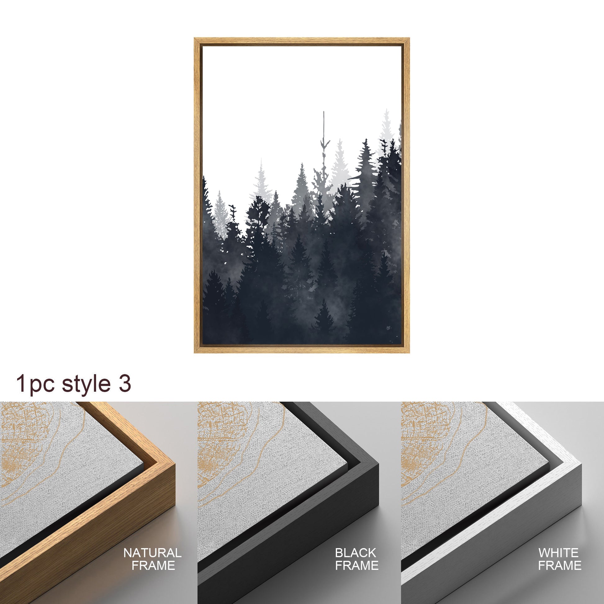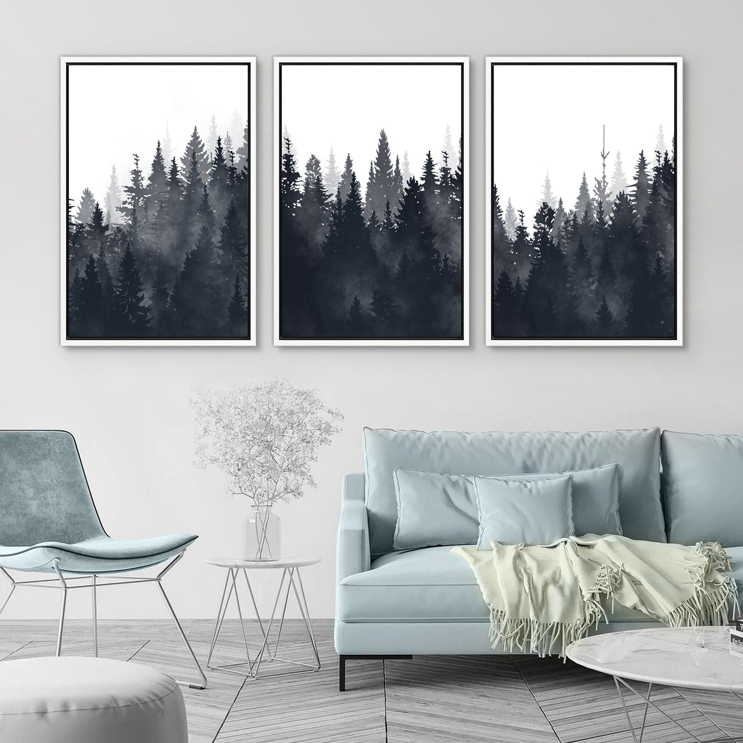 Framed Canvas Wall Art Set of 3 Misty Forest Mountain Landscape Print Modern Art Nature Wall Decor