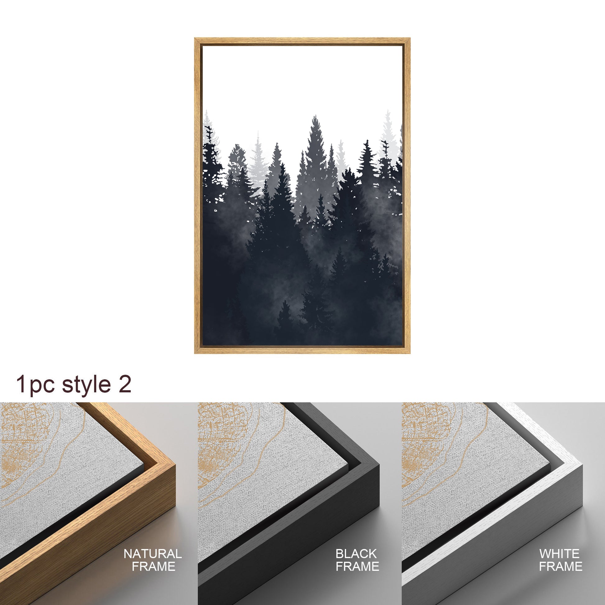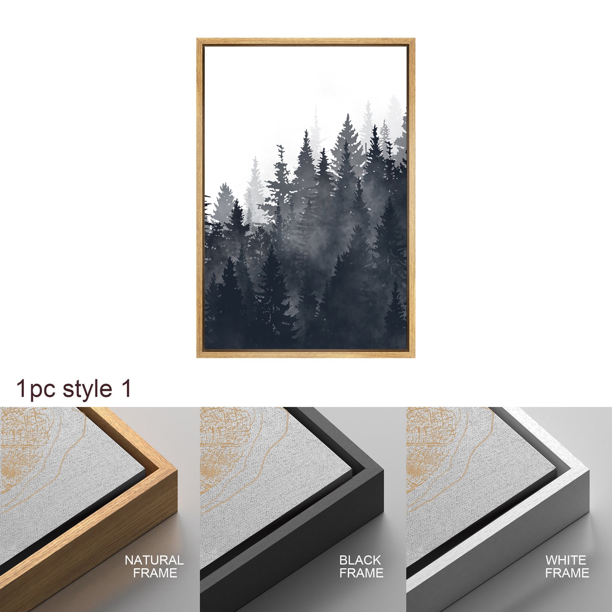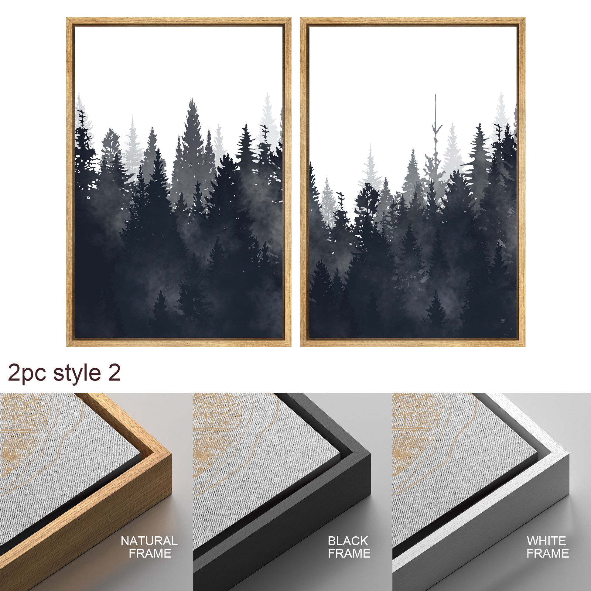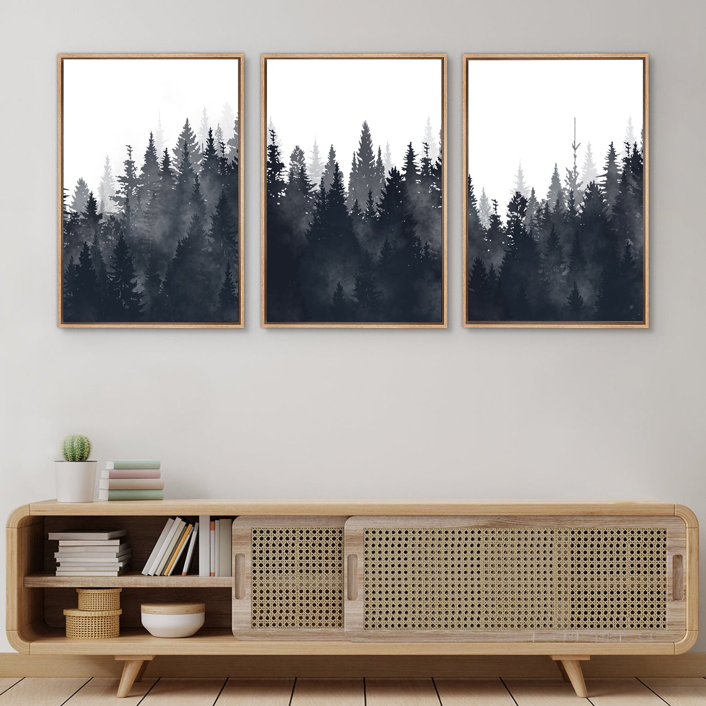 Framed Canvas Wall Art Set of 3 Misty Forest Mountain Landscape Print Modern Art Nature Wall Decor